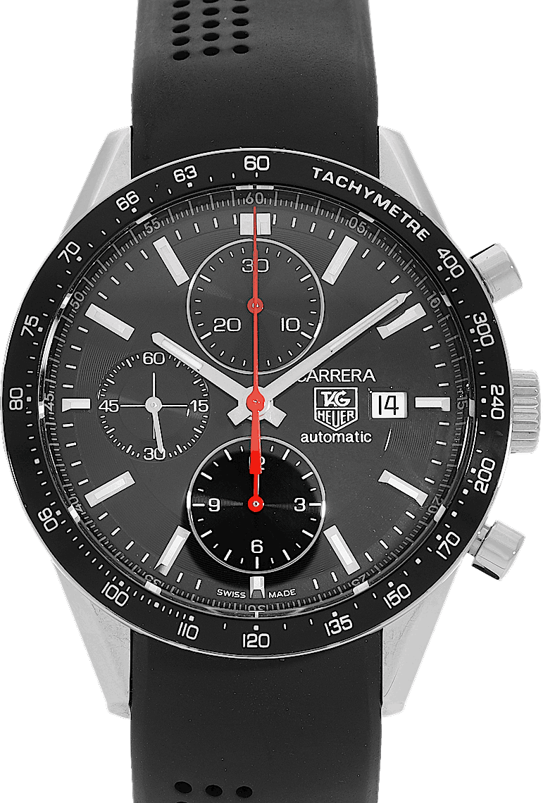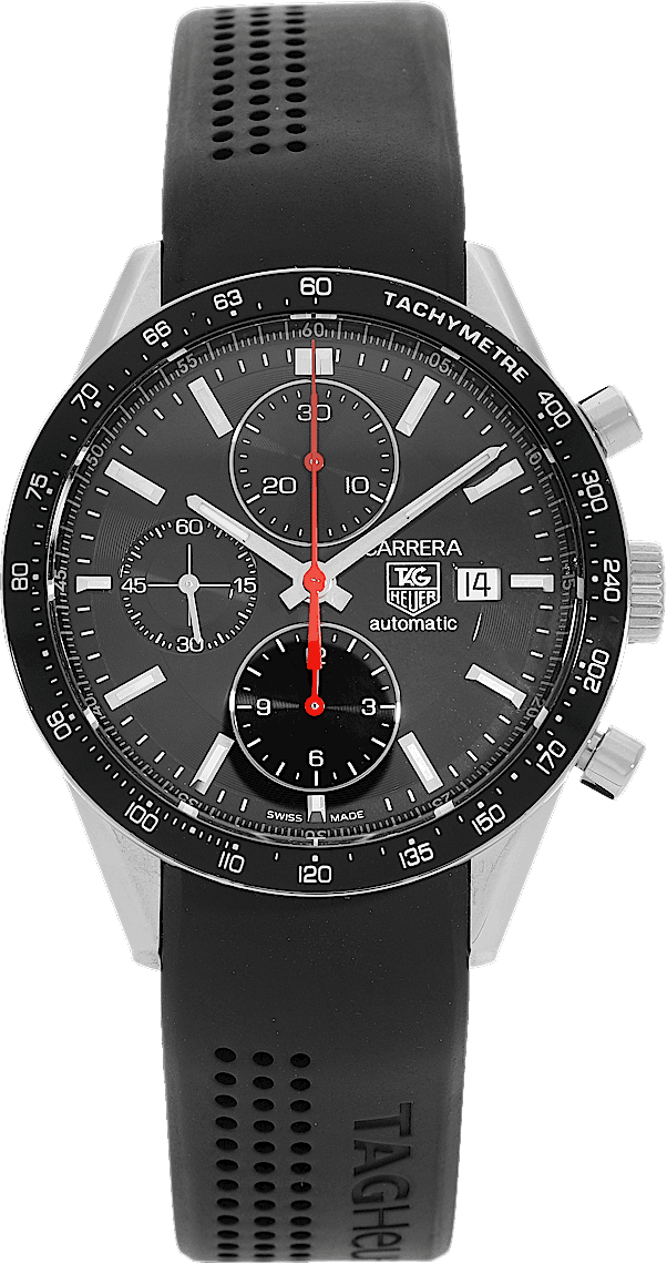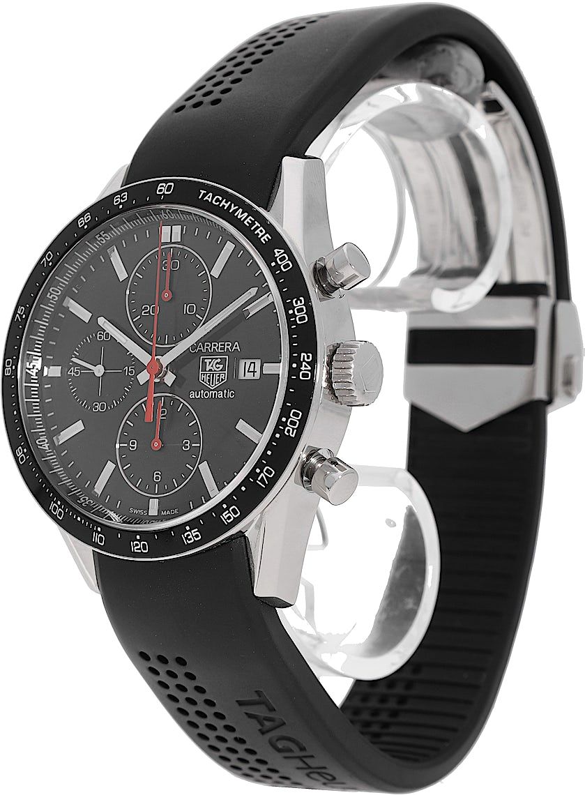 TAG Heuer Carrera, Reference: CV2014.FT6014, Gender: Male, Size: 42mm, Dial color: Black, Strap material: Rubber, Movement: Automatic, Year: 2009, Condition: Previously worn with some signs of usage. The movement is flawless and the case has been cleaned. watch tested to ensure full functionality. An inspection by our certified watchmakers guarantees its authenticity., Documents: Original papers, CHRONEXT Certificate