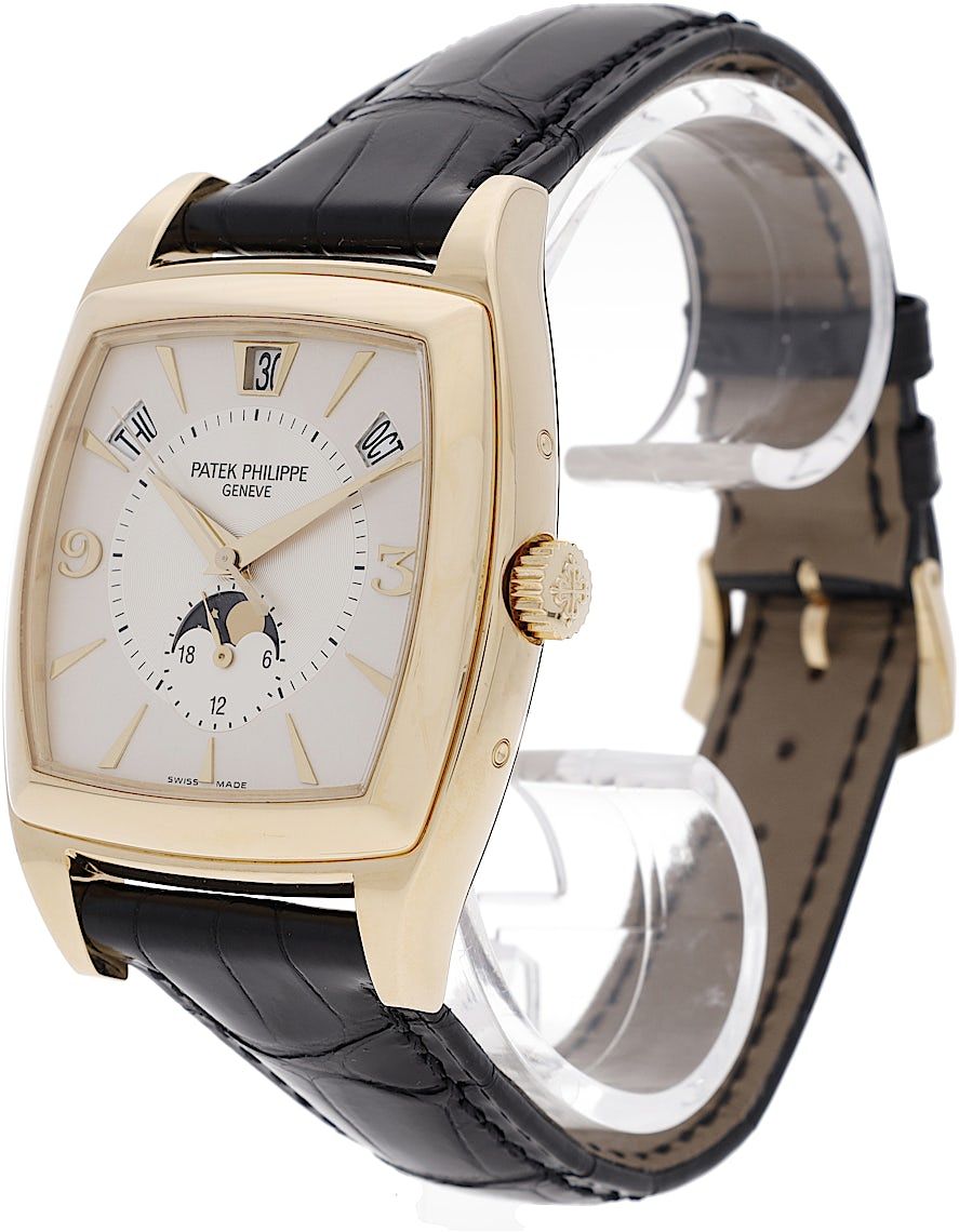 Patek Philippe Gondolo, Reference: 5135J, Gender: Unisex, Size: 39mm, Dial color: Silver, Strap material: Alligator Leather, Movement: Automatic, Year: 2007, Condition: Previously worn, minor to no signs of usage. The movement is flawless and the case has been cleaned. watch tested ensure full functionality. An inspection by our certified watchmakers guarantees its authenticity., Documents: Original papers, CHRONEXT Certificate