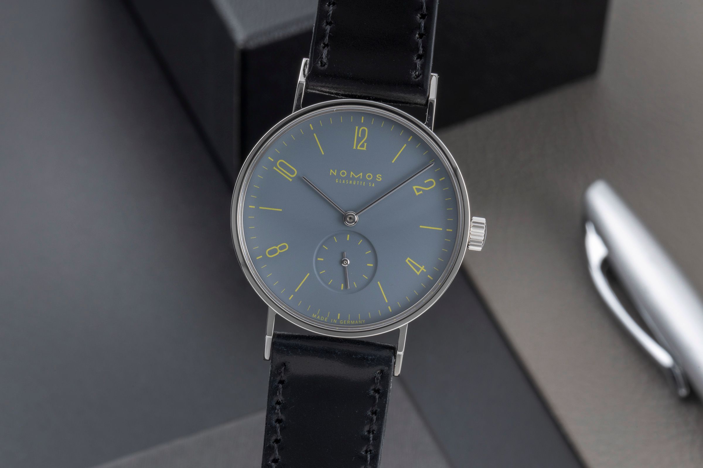 Alternative title: NOMOS 179.S16 Tangente 38 Datum Super Sardine; Nomos Tangente Super 30 Hausmausgrau Stahl Handaufzug Limited B&P 2005 [2506089]