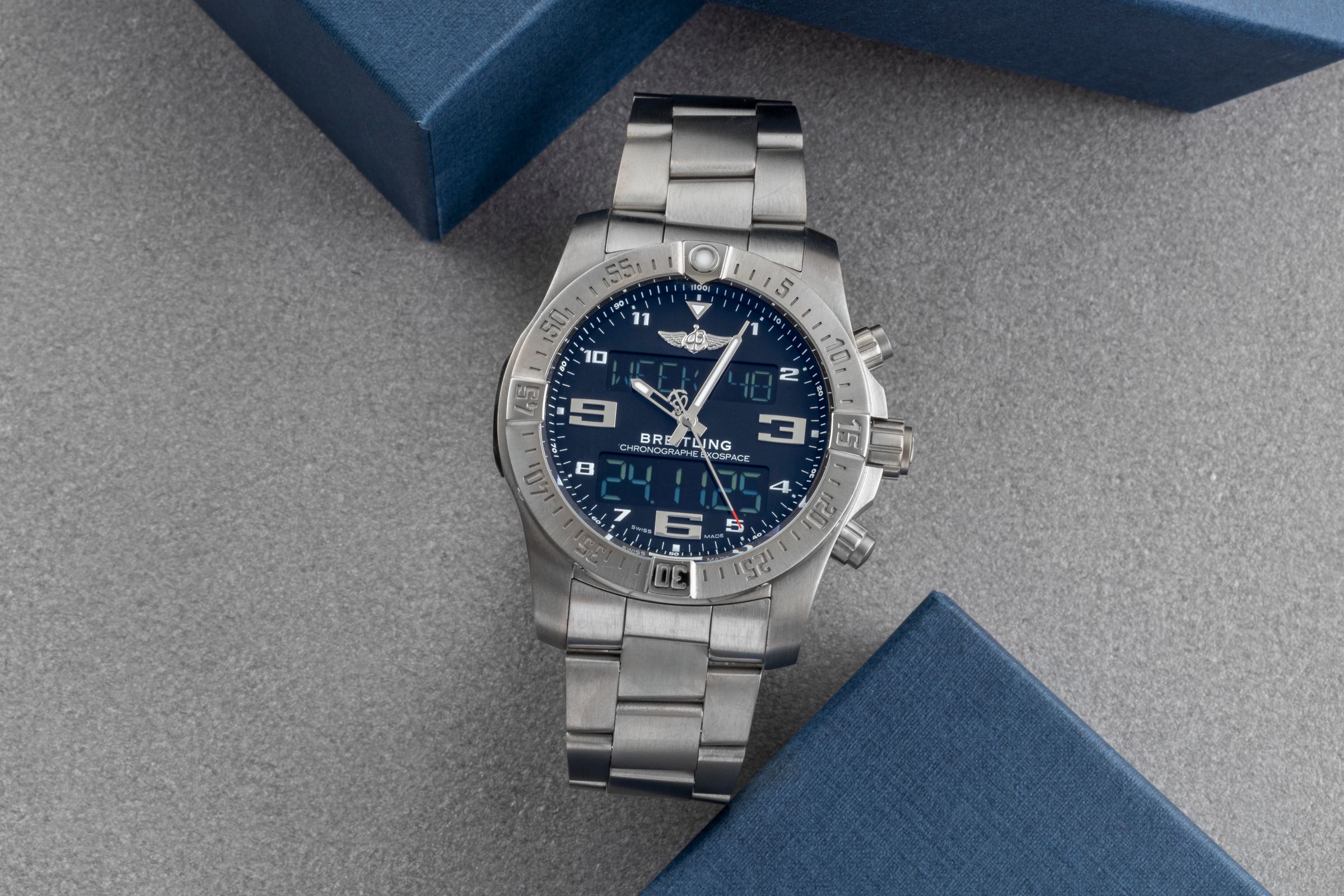 Alternative title: Breitling EB5510H1/BE79 B55 Exospace Titanium / Black / TwinPro Grey / Folding; Breitling Exospace B55 Connected Chronograph Titan Herrenuhr EB5510H1/BE79 B&P [2505980]