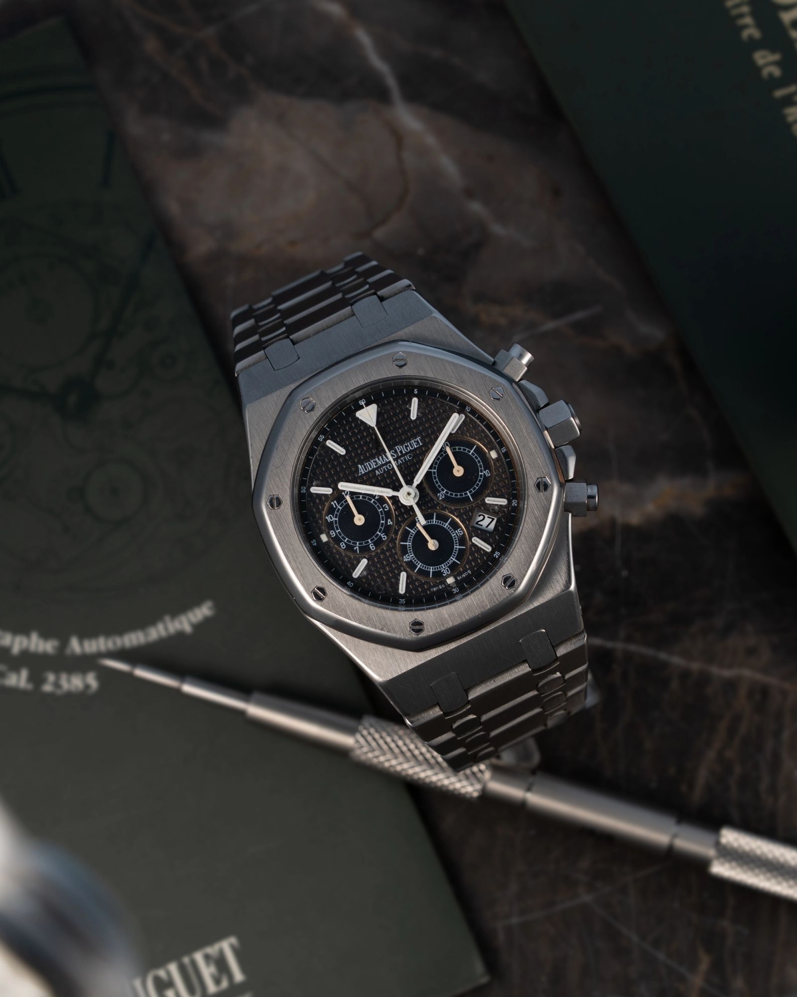 Inside the case we find the Audemars Piguet automatic 2385 calibre chronograph movement, which was serviced and is running good.