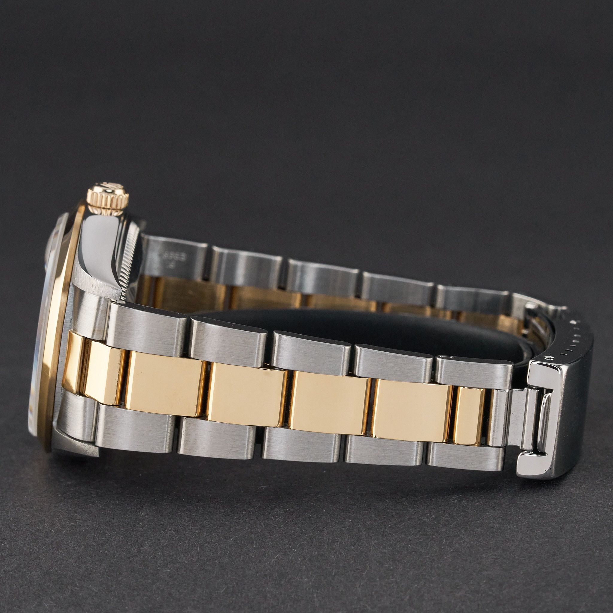 This Rolex Oyster Perpetual Date 15203 features a Grey Arabic dial and is crafted from 18K yellow gold and stainless steel, with a production year of 1997.