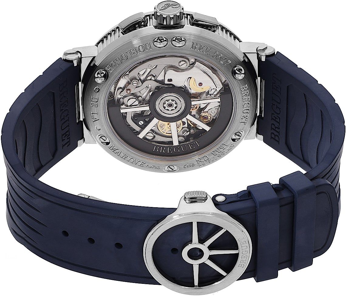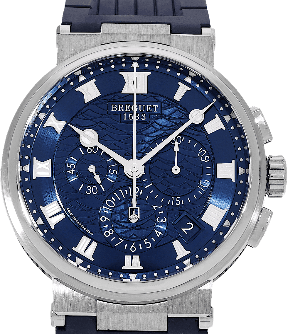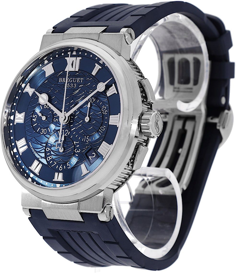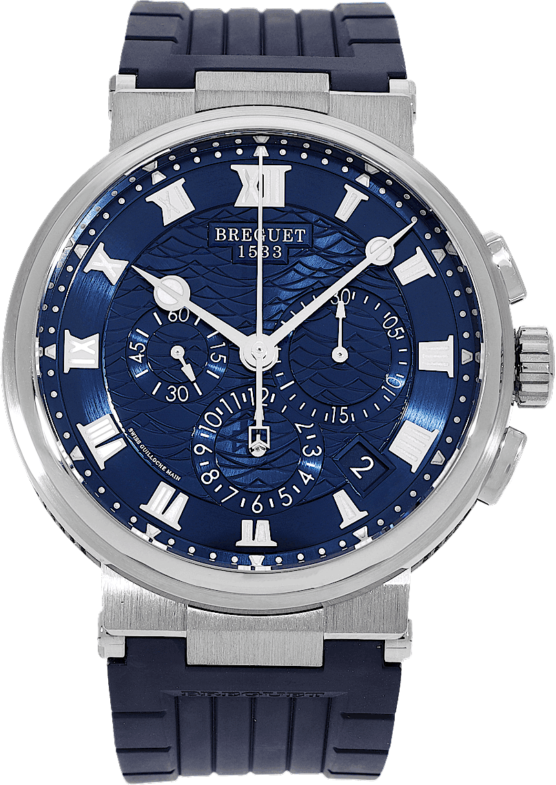 Breguet Marine, Reference: 5527BB/Y2/9WV, Gender: Male, Size: 43mm, Dial color: Blue, Strap material: Rubber, Movement: Automatic, Condition: Previously worn with some signs of usage. The movement is flawless and the case has been cleaned. watch tested to ensure full functionality. An inspection by our certified watchmakers guarantees its authenticity., Documents: Original papers, CHRONEXT Certificate