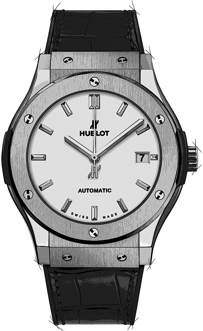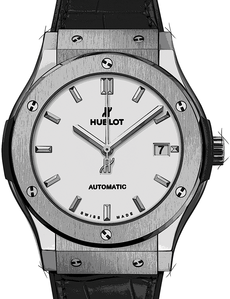 Hublot Classic Fusion, Reference: 511.NX.2611.LR, Gender: Male, Size: 45mm, Dial color: White, Strap material: Rubber Alligator Leather, Movement: Automatic, Year: 2024, Condition: New and unworn. An inspection by our certified watchmakers guarantees authenticity., Documents: Original papers, CHRONEXT Certificate
