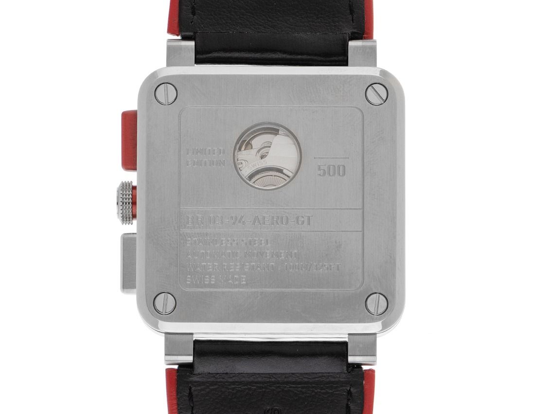 Gehäuse Edelstahl poliert und satiniert, Gehäusemaße ohne Krone (L x B x H) 42 x 42 x 13,4mm. Lünette Edelstahl poliert und satiniert. Armband Leder schwarz / rot mit Ziernaht, Anstoßbreite 24mm, Stiftschließe Edelstahl mit Hersteller-Logo. Zifferblatt skelettiert mit aufgesetzten Leuchtindexen und Edelstahl Leuchtzeigern. Uhrwerk Automatik, Chronograph, Bell & Ross Kaliber BR 326. Anzeige von Stunde und Minute über Zeiger aus der Mitte, kleine Sekunde mit Sekundenstopp zur sekundengenauen Einstellung der Uhrzeit bei 12 Uhr, Datumsanzeige mit Schnellverstellung bei 3 Uhr. Saphirglas kratzfest. Krone mit Hersteller-Logo. Boden Edelstahl 4-fach verschraubt und graviert mit Saphirglas Sichtfenster. Gewicht der Uhr inklusive Armband 145g. Wasserdicht bis 10 ATM. Referenznummer: BR0394-BL-SI/SCA, ID: P200160001125H-7900, Artikelnummer: 10000083393. Original Bell & Ross Box und Garantie Papiere von Dezember 2023, Beschreibung, Wechselband Textil und Bandwechselwerkzeug sowie Watchregister Auszug von November 2025, The Watch Register Zertifikat / ohne Eintrag (Internationale Datenbank für verlorene oder gestohlene Uhren), Full Set. Limitiert auf 500 Exemplare. Ungetragen. Lieferzeit sofort.
