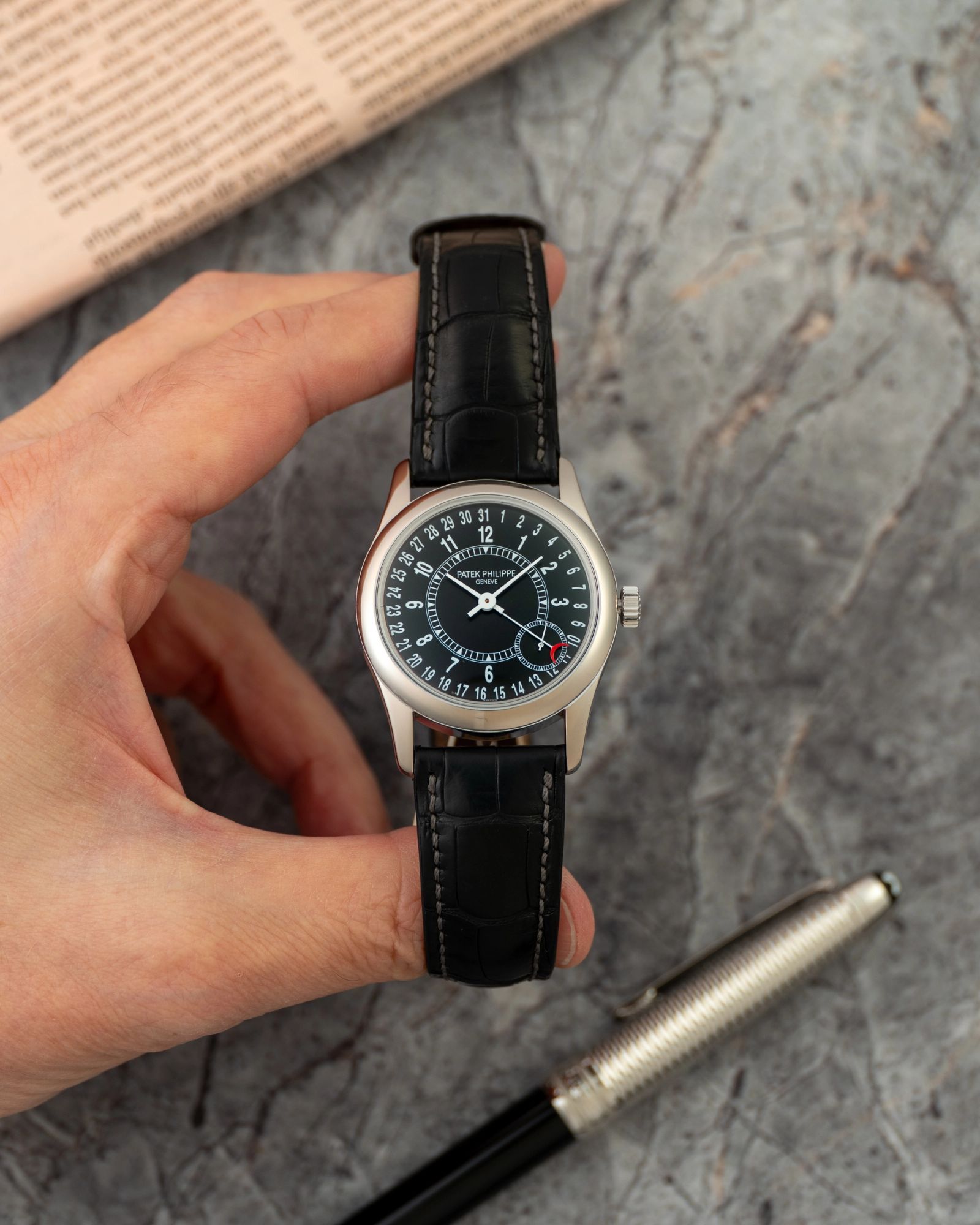 The Patek Philippe Calatrava 6000G was introduced at Baselworld 2005. Its distinctive dial design, featuring an off-centred sub-dial and chapter ring, was inspired by the earlier reference 5000 from the 1990s. With a larger 37 mm case compared to the 33 mm of its predecessor, the 6000G captured the contemporary spirit of its time.