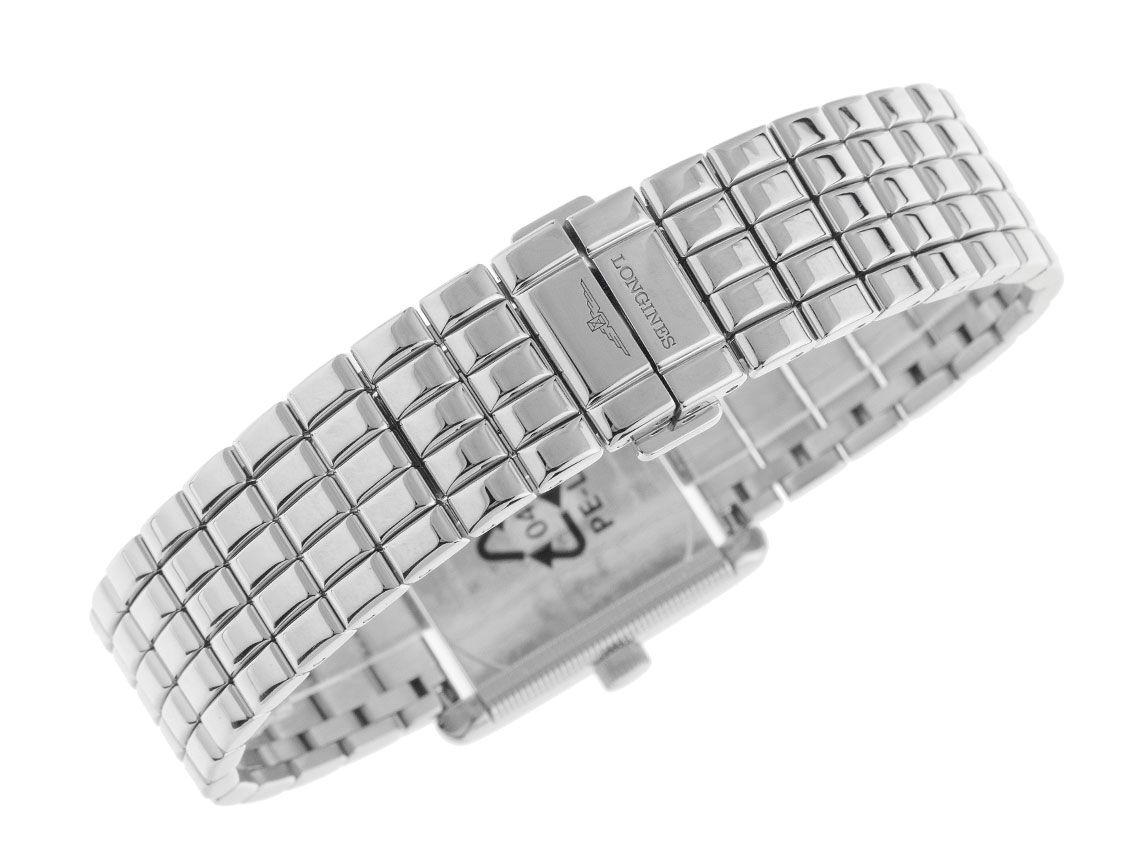 Gehäuse Edelstahl poliert, rechteckig, Gehäusemaße ohne Krone (L x B x H) 29 x 21,5 x 6,75mm. Lünette Edelstahl glatt und poliert. Armband Edelstahl poliert, verdeckte Doppelsicherheitsfaltschließe Edelstahl mit Hersteller-Logo. Zifferblatt silberfarben mit schwarzen Indexen, schwarzen römischen Ziffern und gebläuten Zeigern. Uhrwerk quarzgesteuert, Longines Kaliber L178. Anzeige von Stunde und Minute über Zeiger aus der Mitte, kleine Sekunde mit Sekundenstopp zur sekundengenauen Einstellung der Uhrzeit bei 6 Uhr. Saphirglas kratzfest. Krone geriffelt. Boden Edelstahl graviert. Gewicht der Uhr inklusive Armband 73g, Länge des Armbandes inklusive Gehäuse 180mm. Referenznummer: L5.200.4.75.6, ID: ST610224601125RE-2050, Artikelnummer: 10000083498. Original Longines Box mit Umkarton und Garantie Papiere von 2025, Full Set. Ungetragen. Lieferzeit sofort.