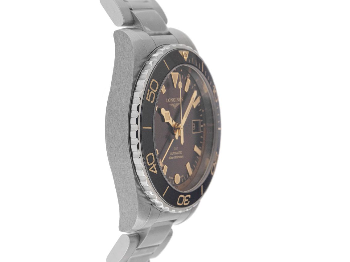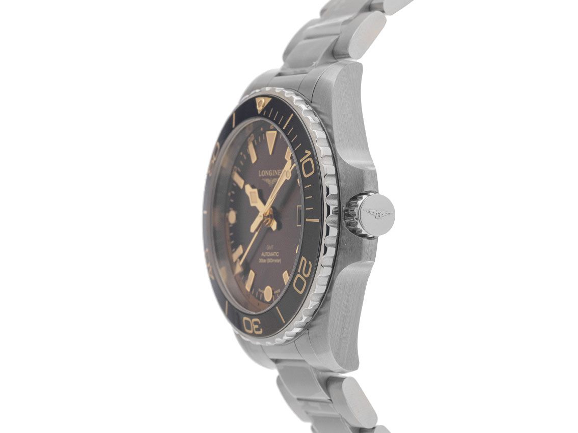 Gehäuse Edelstahl poliert und satiniert, Gehäusedurchmesser ohne Krone 41mm, Gehäusehöhe 12,9mm. Lünette Edelstahl mit braunem Keramik Inlay, 60-Minuten Einteilung und Leuchtpunkt, einseitig drehbar. Armband Edelstahl poliert und satiniert, Sicherheitsfaltschließe Edelstahl mit Hersteller-Logo. Zifferblatt braun mit Sonnenschliff, aufgesetzten Leuchtindexen und vergoldeten Leuchtzeigern. Uhrwerk Automatik, Longines Kaliber L844, Gangreserve ca. 72 Stunden. Anzeige von Stunde, Minute und Sekunde über Zeiger aus der Mitte mit Sekundenstopp zur sekundengenauen Einstellung der Uhrzeit, Datumsanzeige mit Schnellverstellung bei 3 Uhr, GMT (zweite Zeitzone) ablesbar über Zeiger aus der Mitte. Saphirglas kratzfest. Krone verschraubbar mit Flankenschutz und Hersteller-Logo. Boden Edelstahl verschraubt und graviert. Gewicht der Uhr inklusive Armband 181g, Länge des Armbandes inklusive Gehäuse 210mm. Wasserdicht bis 30 ATM. Referenznummer: L3.790.4.66.6, ID: ST610239001125RE-3250, Artikelnummer: 10000083499. Original Longines Box mit Umkarton und Garantie Papiere von 2025 sowie Beschreibung, Full Set. Ungetragen. Lieferzeit sofort.