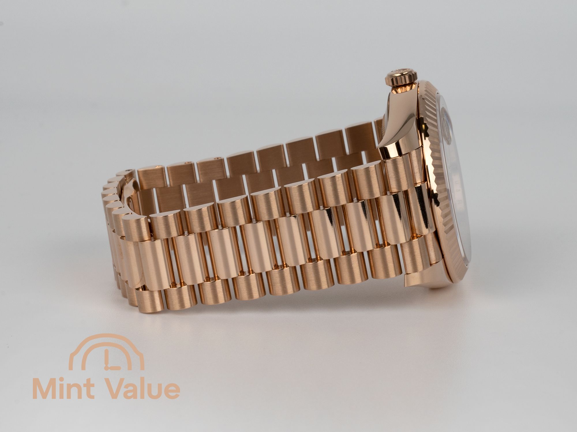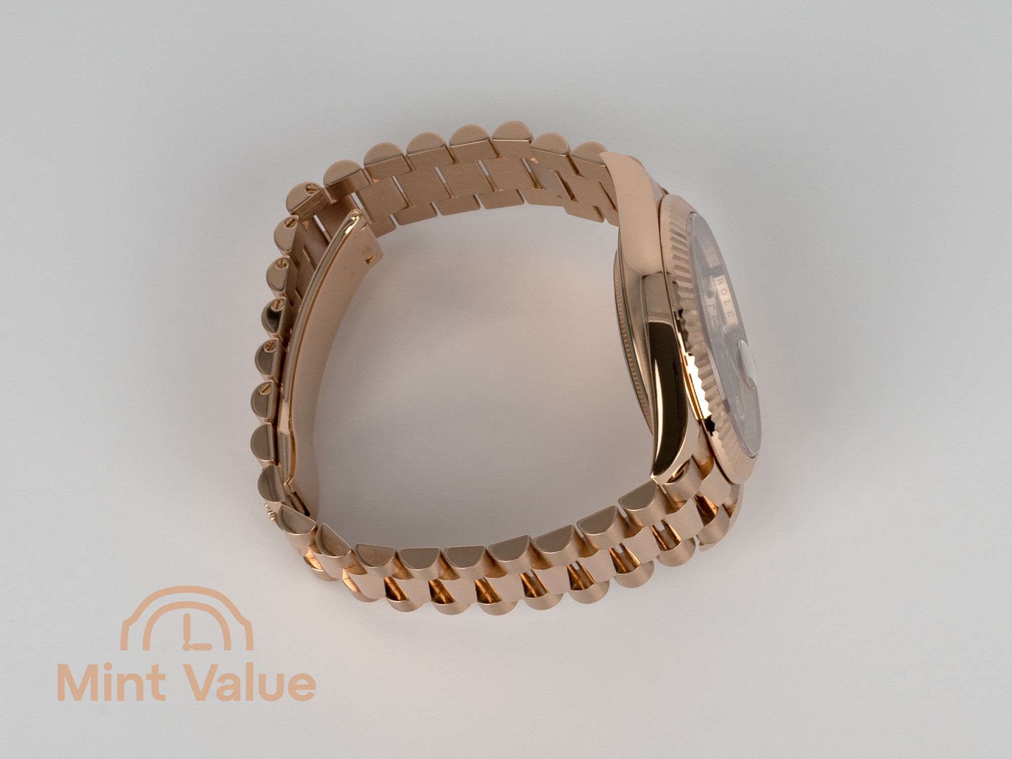 The pinnacle of prestige. Crafted in 18 ct Everose gold, the Rolex Day-Date 40 ref. 228235