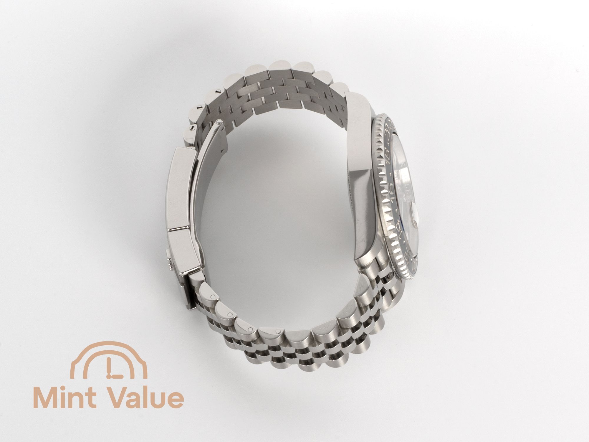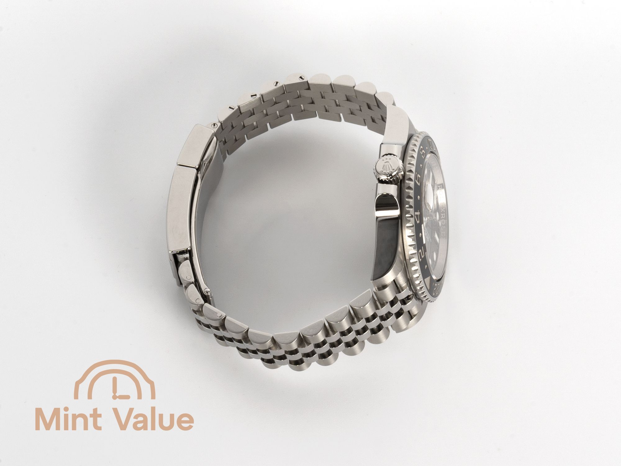 recognized among collectors as the “Bruce Wayne” for its refined black-and-grey Cerachrom bezel, marries travel-watch heritage with modern understatement. The 40 mm Oystersteel case, paired with the Jubilee bracelet, anchors an aesthetic of quiet confidence — designed for those who traverse borders yet appreciate discreet elegance.
