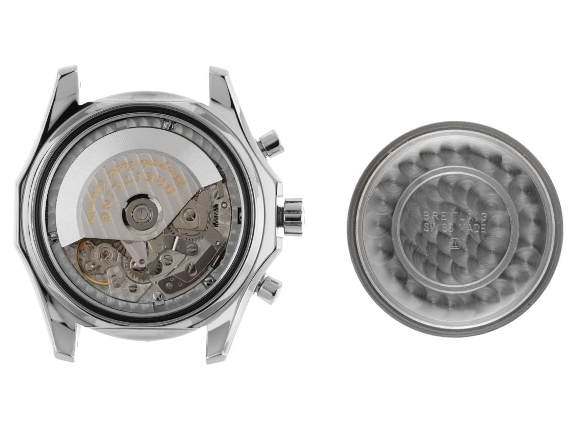 Gehäuse Edelstahl poliert, Gehäusedurchmesser ohne Krone 43mm, Gehäusehöhe 15,3mm. Lünette Edelstahl diamantiert und poliert mit Unterglas Rechenschieber, beidseitig drehbar. Armband Leder blau mit Ziernaht, Anstoßbreite 22mm, Stiftschließe Edelstahl mit Hersteller-Logo. Zifferblatt blau mit aufgesetzten Edelstahl Indexen und Edelstahl Zeigern sowie silbernen Hilfszifferblättern. Uhrwerk Automatik, Chronograph, Chronometer, Kaliber B13 mit 25 Edelsteinen. Anzeige von Stunde und Minute über Zeiger aus der Mitte, kleine Sekunde mit Sekundenstopp zur sekundengenauen Einstellung der Uhrzeit bei 9 Uhr, Datums- und Wochentagsanzeige in Englisch mit Schnellverstellung bei 3 Uhr. Saphirglas kratzfest. Krone verschraubbar mit Flankenschutz und Hersteller-Logo. Boden Edelstahl verschraubt und graviert. Gewicht der Uhr inklusive Armband 121g. Referenznummer: A13362, Gehäusenummer: 763XXX, ID: P200880001125H-7900, Artikelnummer: 10000083442. Mit Gangkontrolle und kompletter äußerlicher Aufarbeitung von November 2025. Original Breitling Box mit Umkarton und Watchregister Auszug von November 2025, The Watch Register Zertifikat / ohne Eintrag (Internationale Datenbank für verlorene oder gestohlene Uhren). Superschnäppchen, sehr seltenes Sammlerstück. Sehr guter Zustand. Lieferzeit sofort.