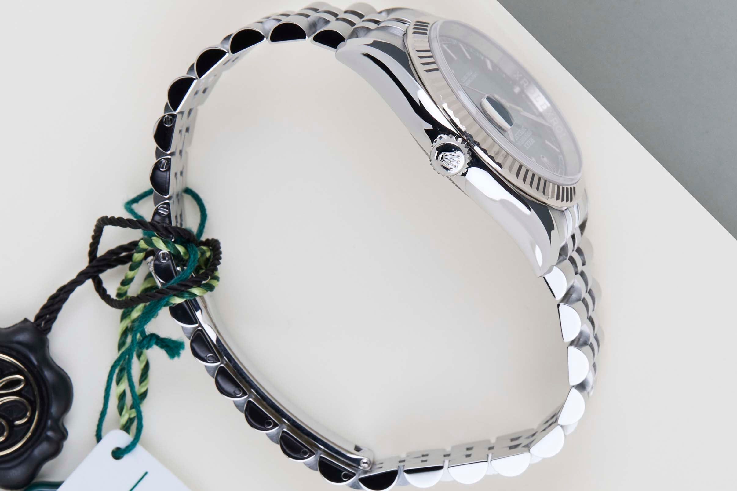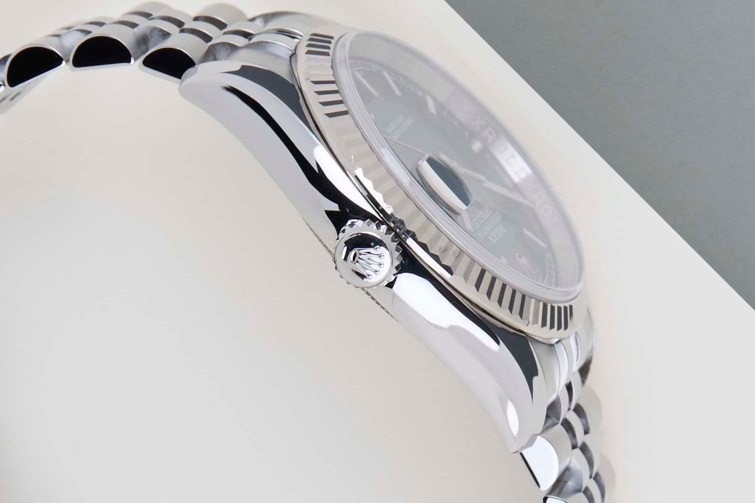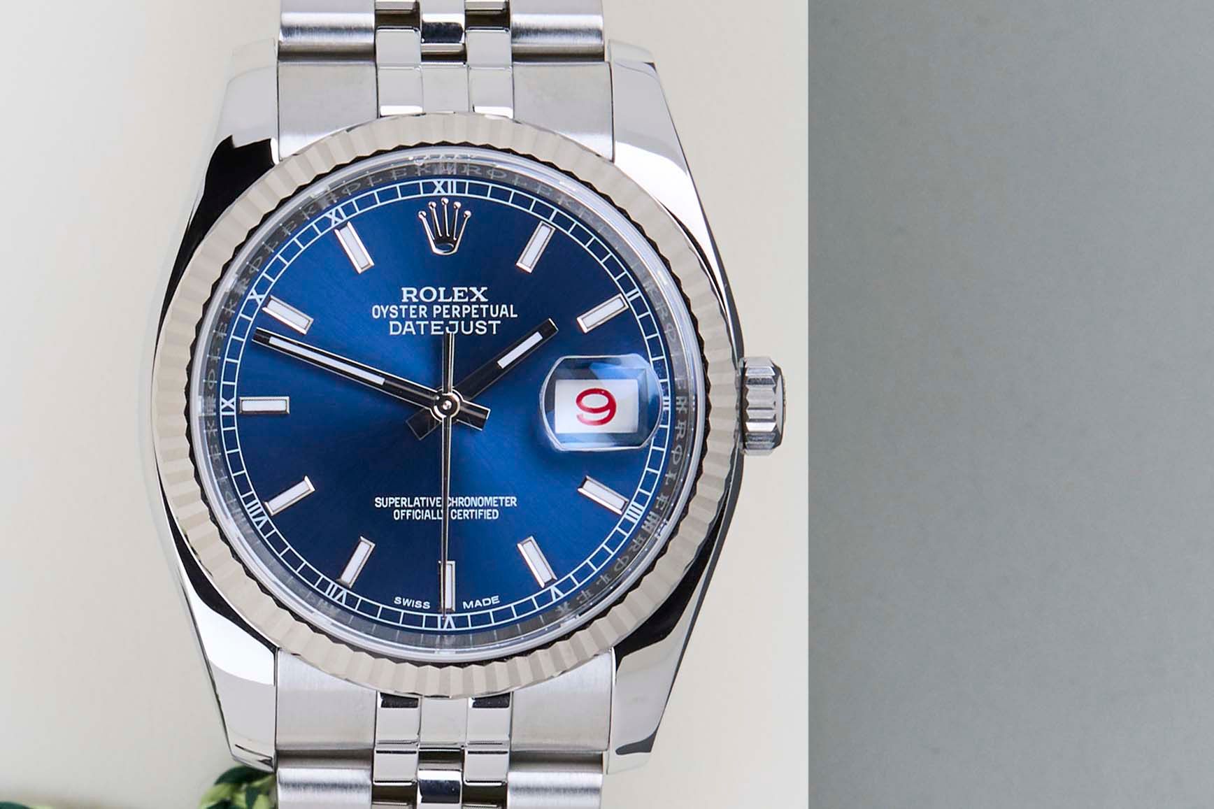 Full Set | European Warranty Card (LC170 - Italy) | Roulette Date | Including Rolex White Tag Rolex introduced the original Datejust in 1945 to celebrate the company's 40th anniversary. Due to the various case sizes and materials, the Datejust has been ingrained in Rolex's history and remains incredibly popular for 75 years.This Rolex Datejust 'Blue Dial' was sold for the first time in July 2016.This Datejust is made of a combination of 18k White Gold and stainless steel and is fitted with a Jubilee bracelet which conceals the Crown clasp. The timepiece features a classic Blue Dial.This Rolex Datejust 36 is in Mint condition and comes with the original Rolex Warranty Papers and Box. Furthermore, the watch has been serviced by our watchmaker, and therefore it comes with one year of Steiner warranty.