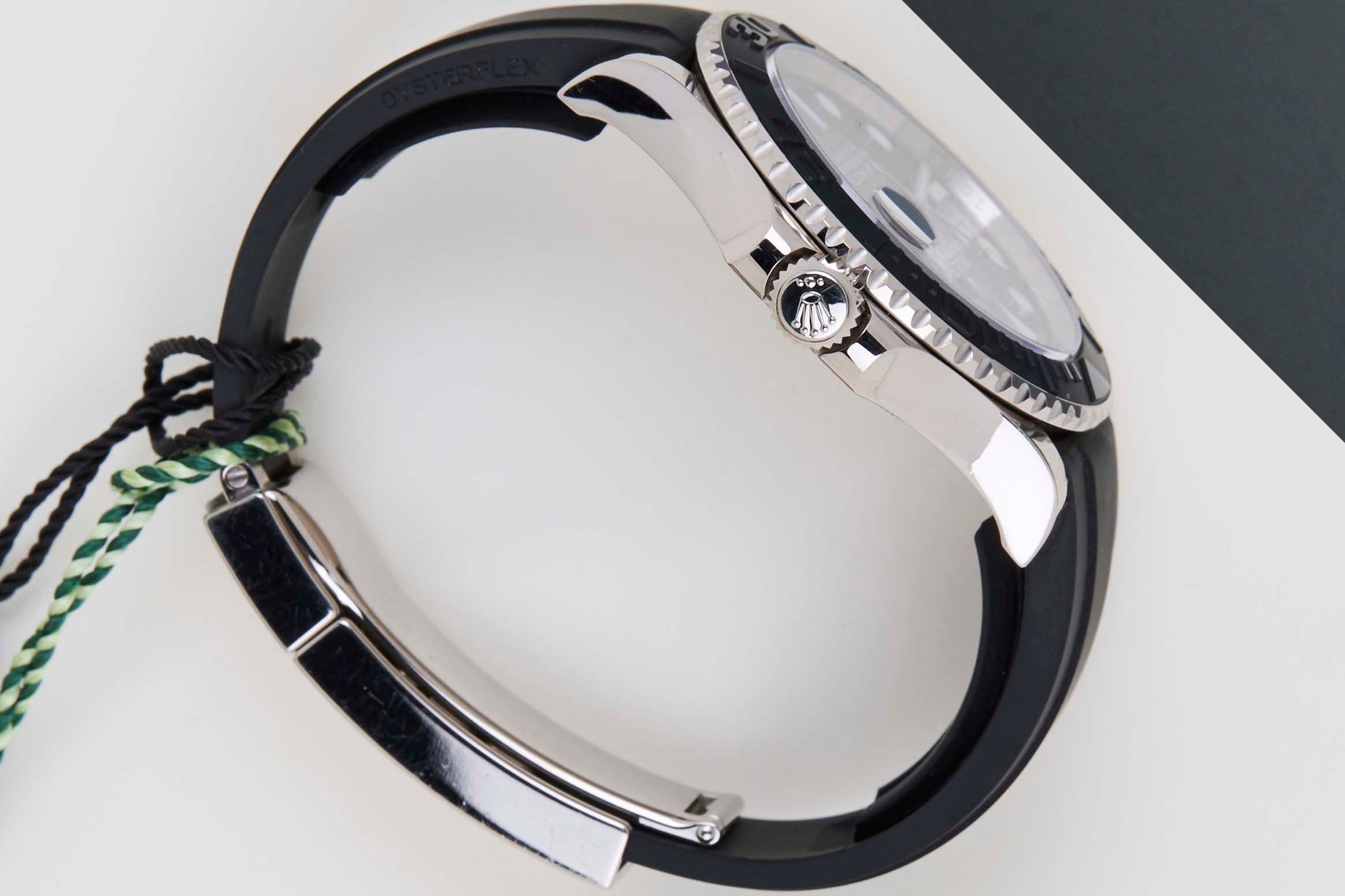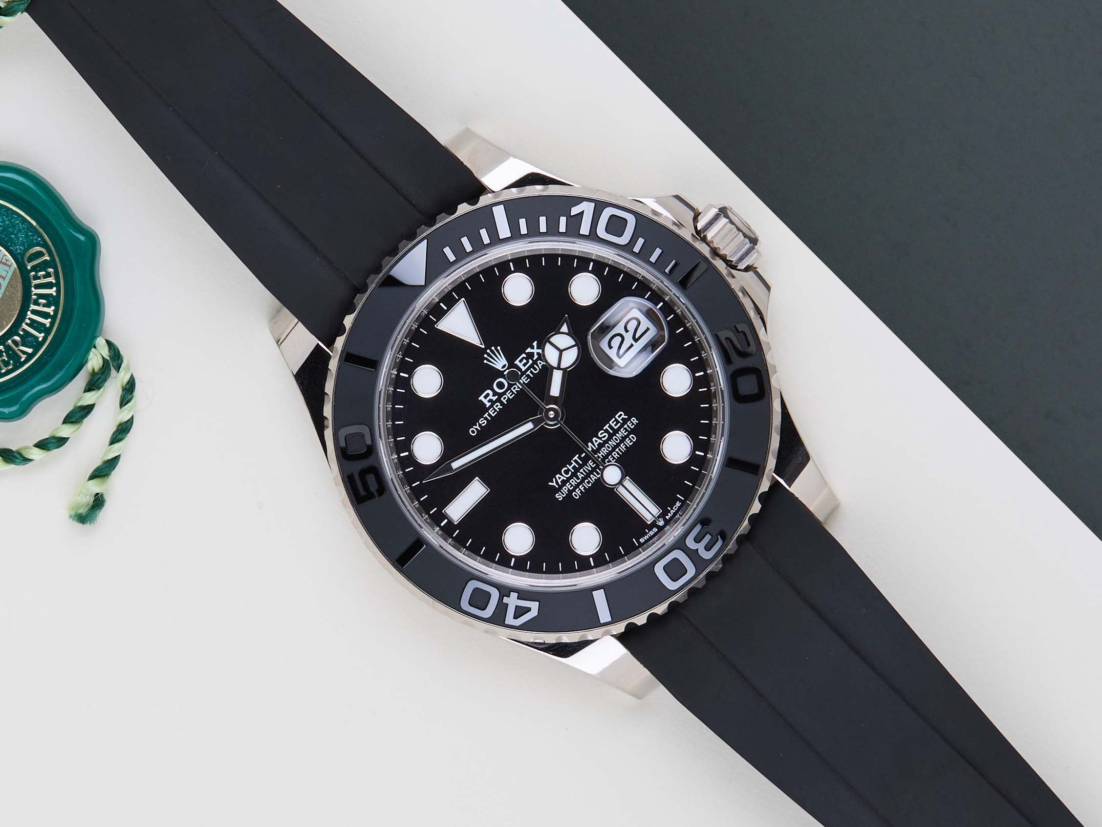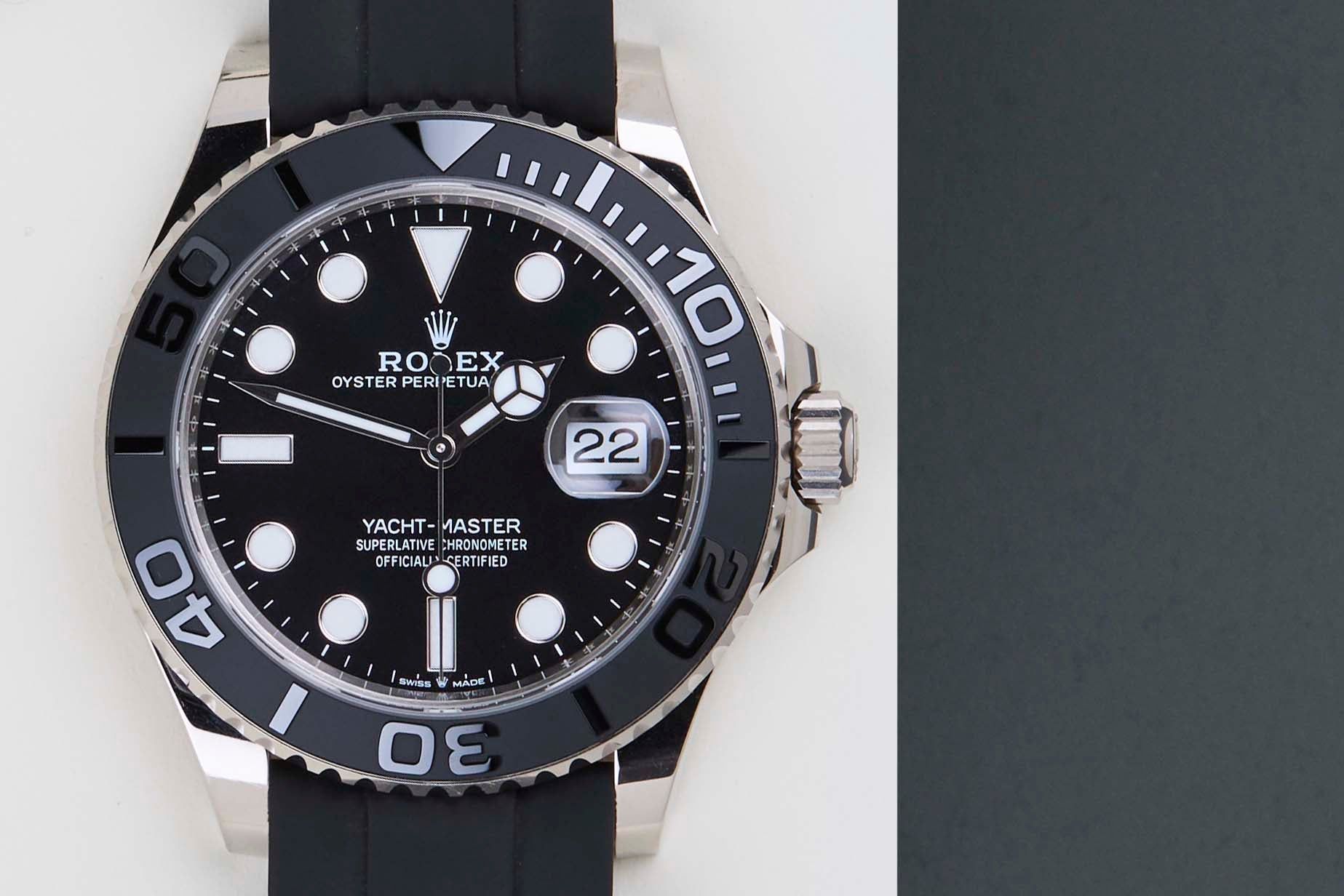 Full Set | Unpolished Condition | International Rolex Warranty Until September 2028 | Bracelet Size F&EThe Rolex Yacht-Master 42 is one of the most admired and prestigious timepieces in Rolex's illustrious collection. First introduced in 1992, the Yacht-Master series has long symbolized the brand’s deep-rooted connection to the yachting world.This highly sought-after Rolex Yacht-Master 42 ‘Black Dial - Oysterflex’ was sold for the first time in September 2023.The reference 226659 is an exceptional model crafted from 18k White Gold equipped with an Oysterflex bracelet. The Oysterflex bracelet is an in-house design which is a superplastic blade covered with a high-end rubber, resistant to environmental effects.This Rolex Yacht-Master is in Unpolished condition and comes with the original Rolex Warranty Card and Box. Furthermore, the watch still has international Rolex Warranty until September 2028.