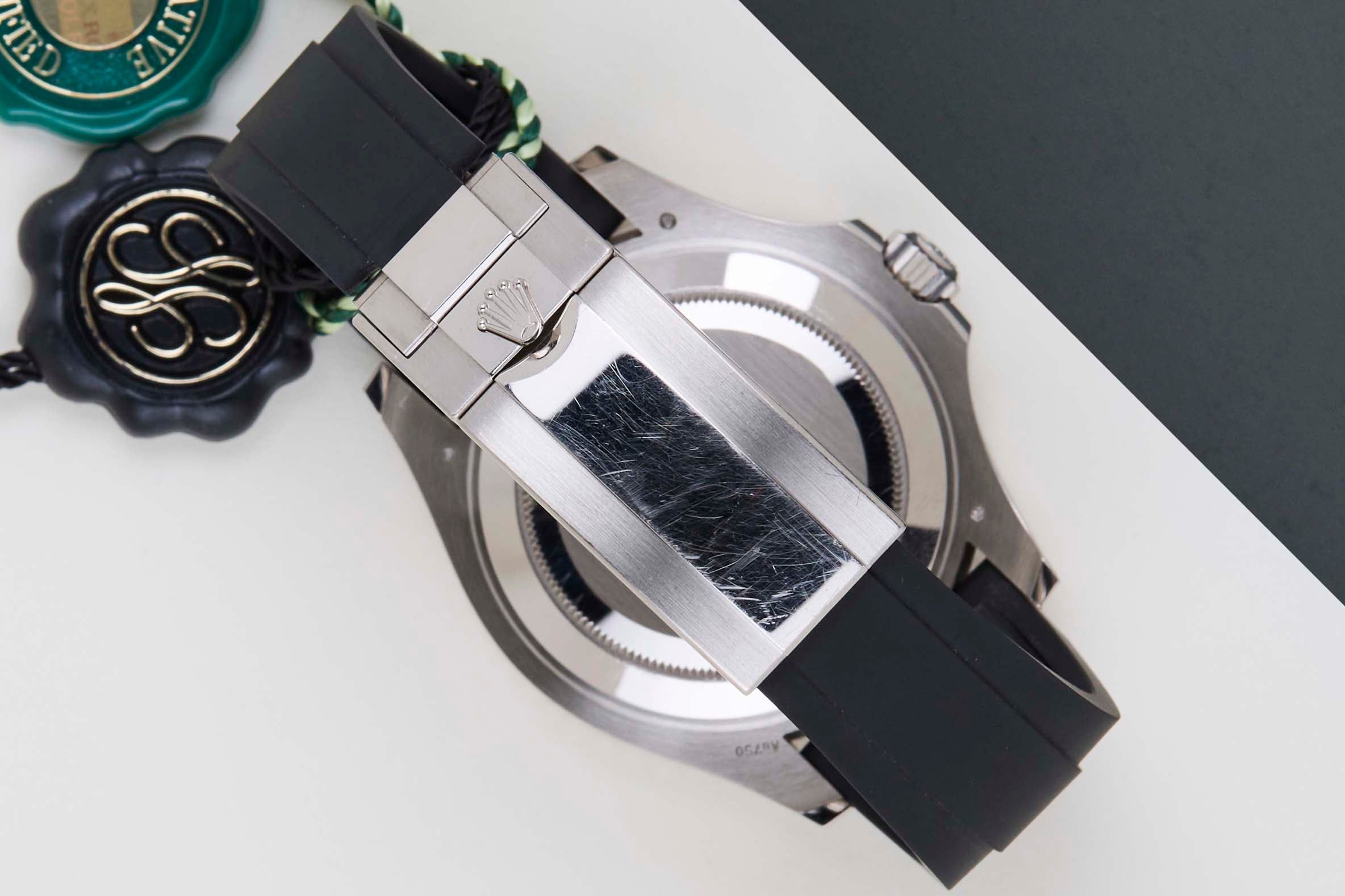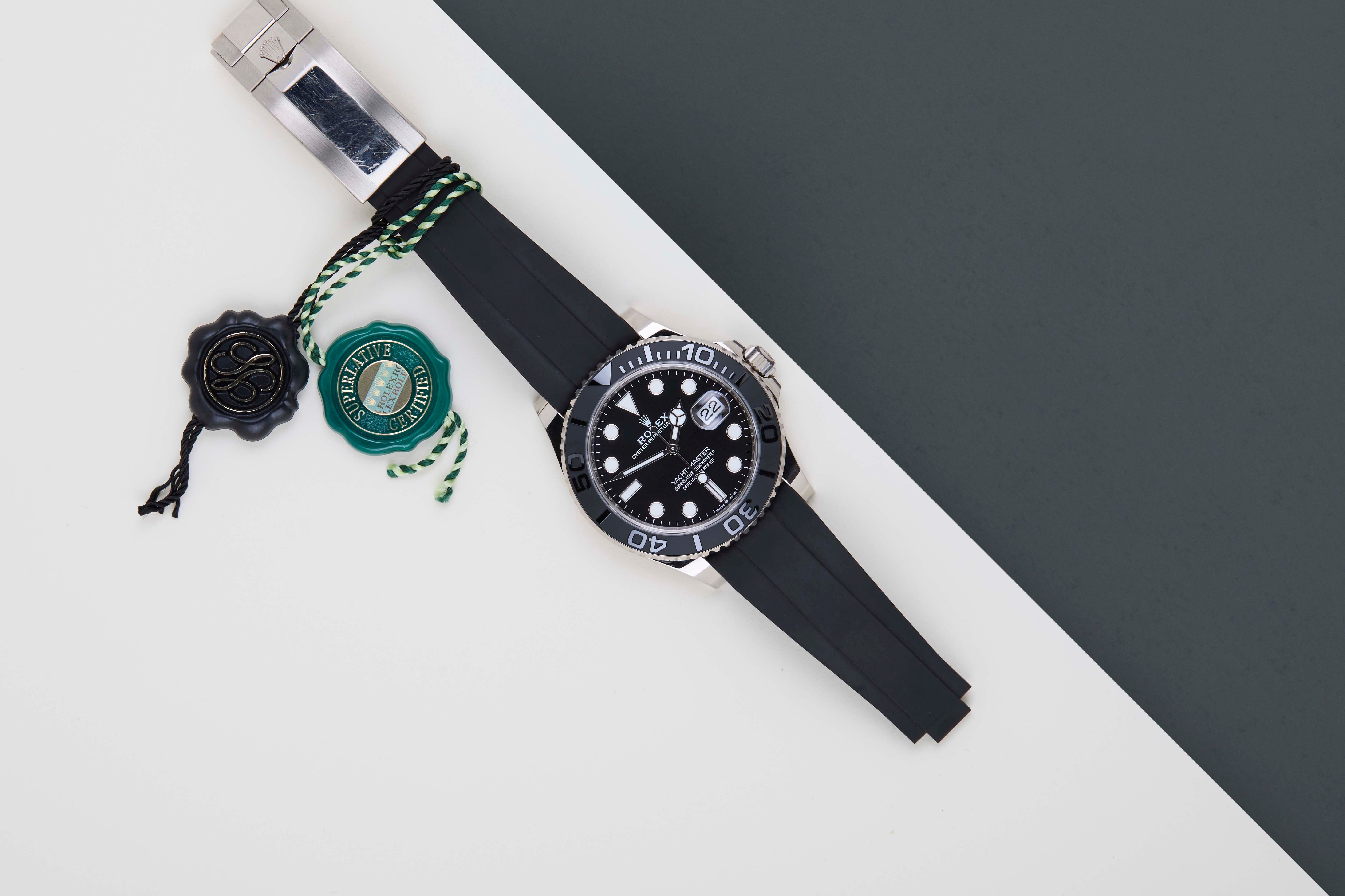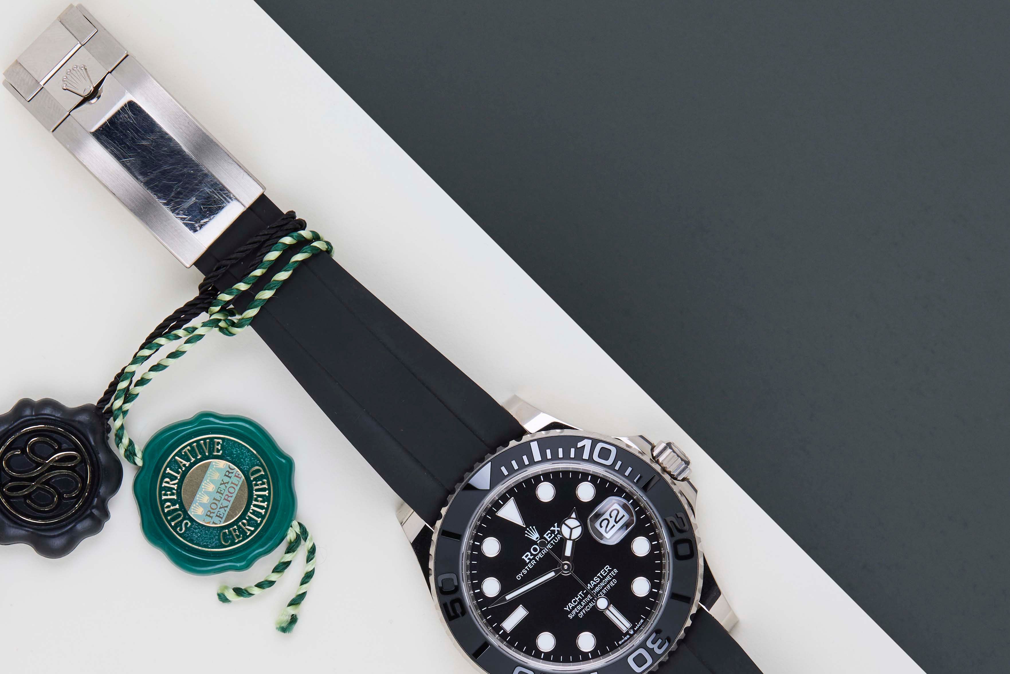 Full Set | Unpolished Condition | International Rolex Warranty Until September 2028 | Bracelet Size F&EThe Rolex Yacht-Master 42 is one of the most admired and prestigious timepieces in Rolex's illustrious collection. First introduced in 1992, the Yacht-Master series has long symbolized the brand’s deep-rooted connection to the yachting world.This highly sought-after Rolex Yacht-Master 42 ‘Black Dial - Oysterflex’ was sold for the first time in September 2023.The reference 226659 is an exceptional model crafted from 18k White Gold equipped with an Oysterflex bracelet. The Oysterflex bracelet is an in-house design which is a superplastic blade covered with a high-end rubber, resistant to environmental effects.This Rolex Yacht-Master is in Unpolished condition and comes with the original Rolex Warranty Card and Box. Furthermore, the watch still has international Rolex Warranty until September 2028.