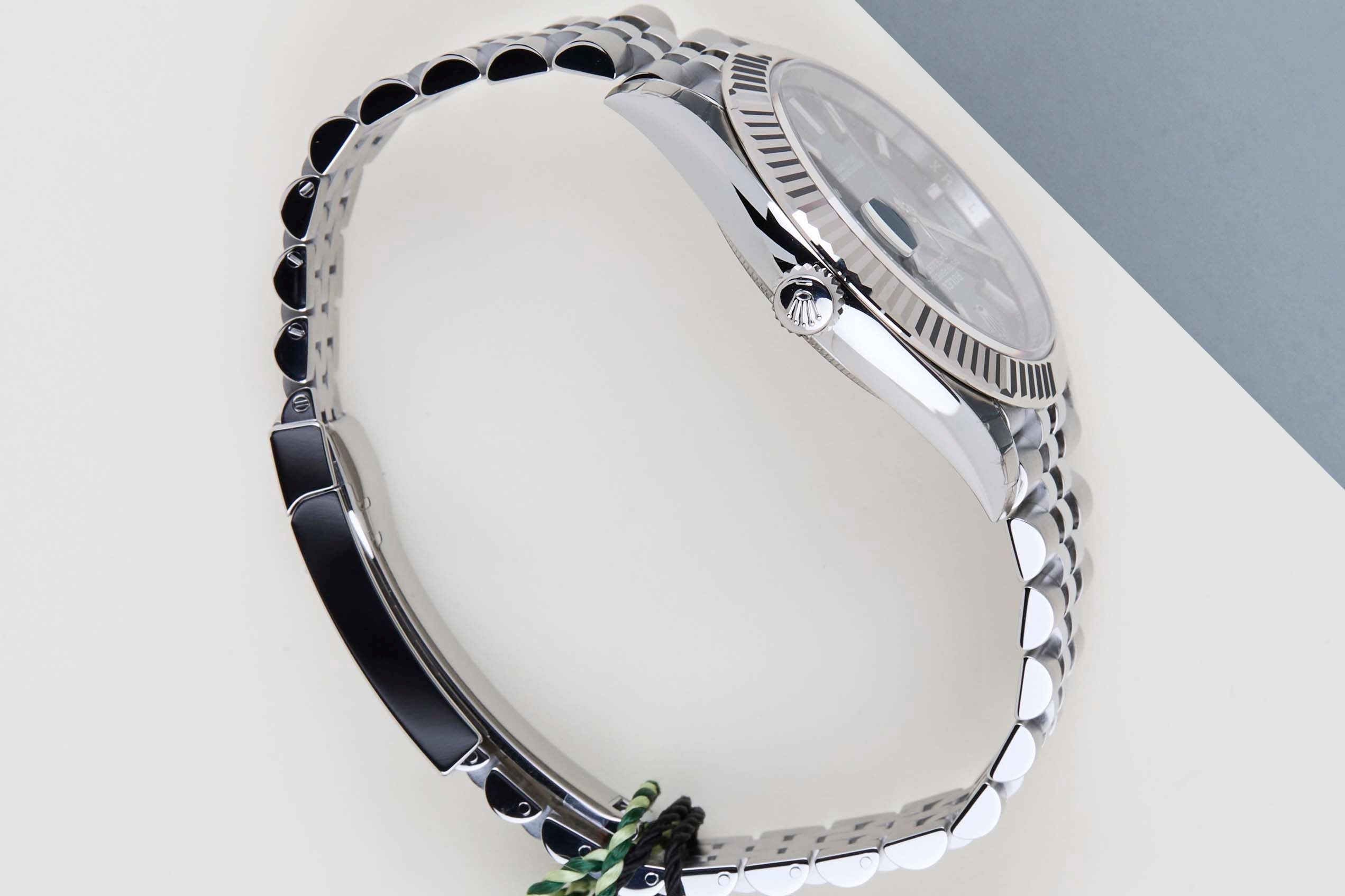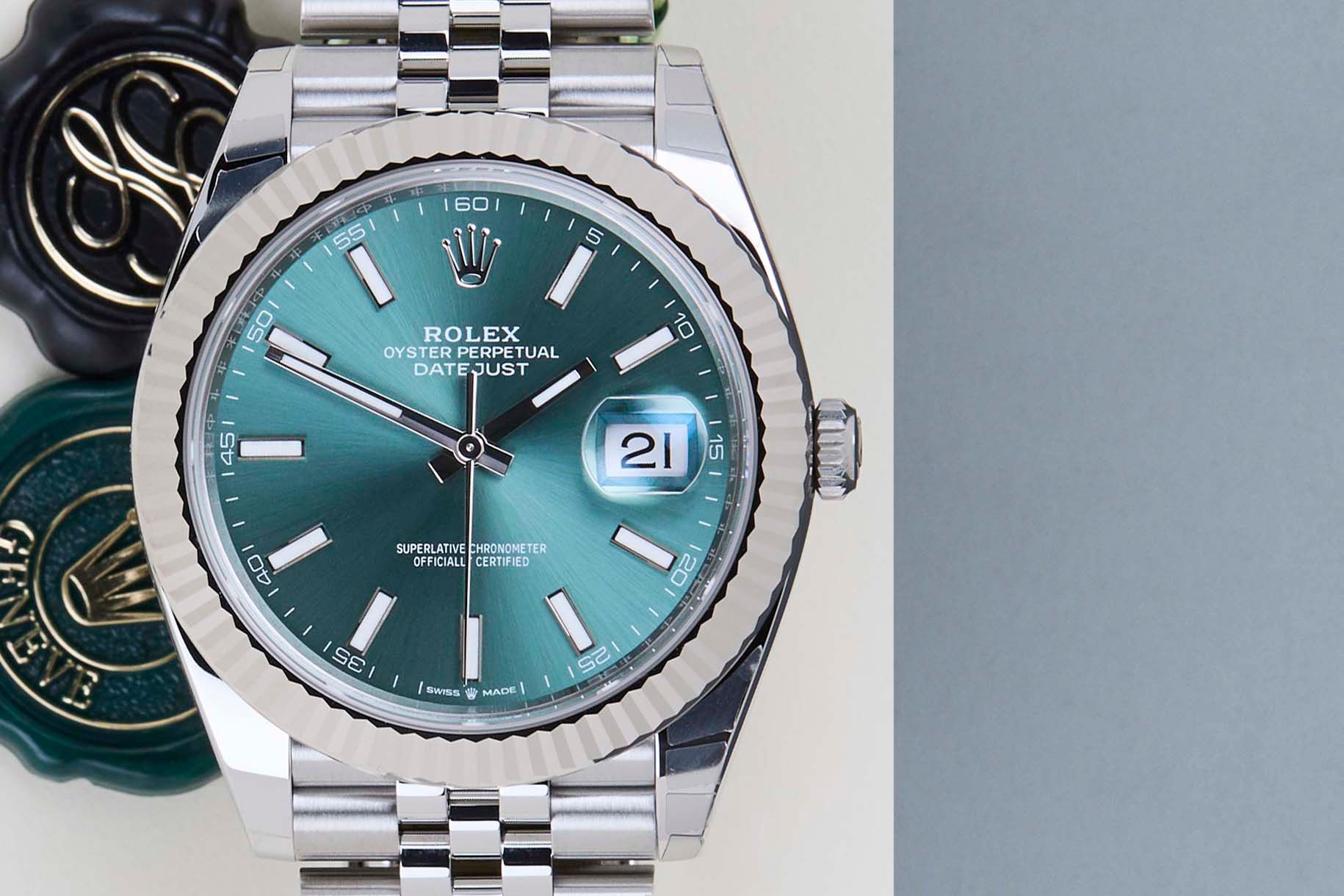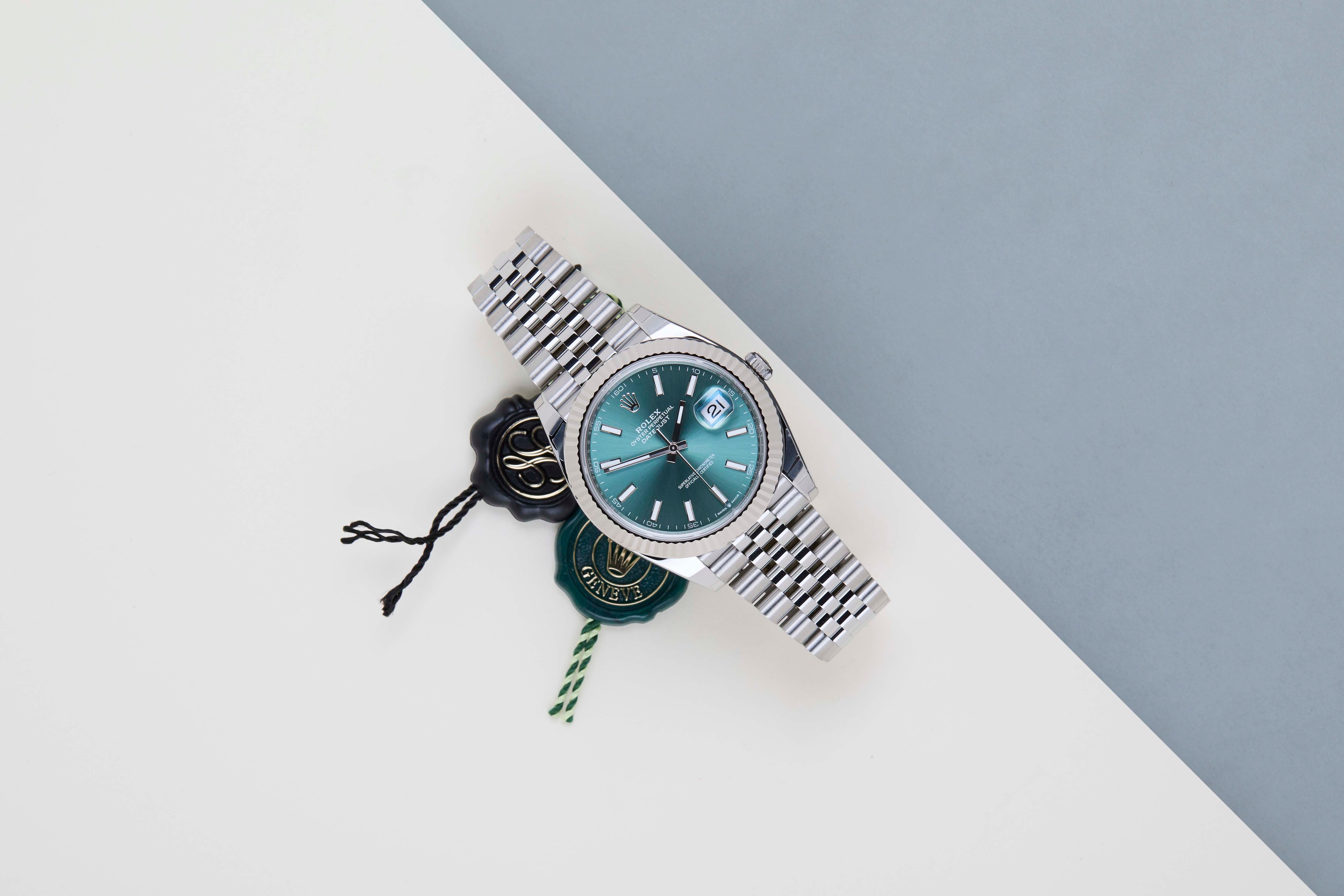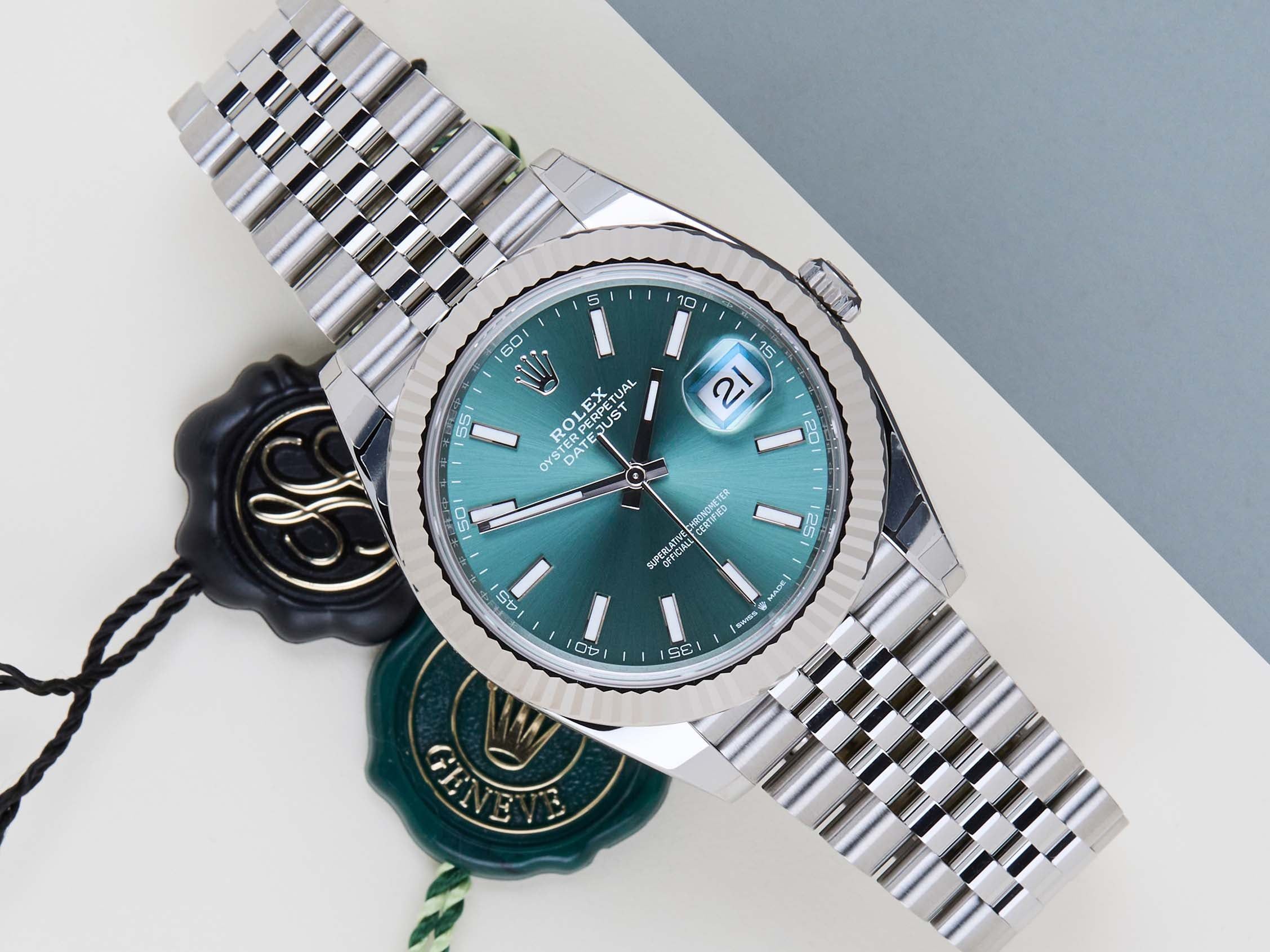 New & Unworn (Partly Stickered) | International Rolex Warranty Until November 2030 Rolex introduced the original Datejust in 1945 to celebrate the company's 40th anniversary. Due to the various case sizes and materials, the Datejust has been ingrained in Rolex's history and remains incredibly popular for 75 years.This Rolex Datejust 'Mint Green Dial - Jubilee' was sold for the first time in November 2025. This Datejust is made of a combination of 18k White Gold and stainless steel and is fitted with an Oyster bracelet. This Rolex Datejust 41 is in New & Unworn condition and comes with the original Rolex Warranty Card and box. Furthermore, the watch still has worldwide Rolex Warranty until November 2030.