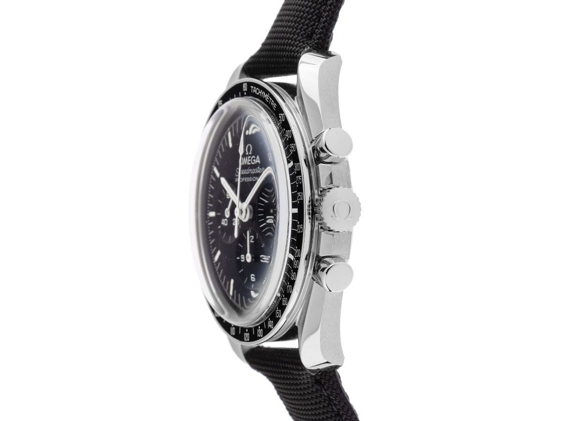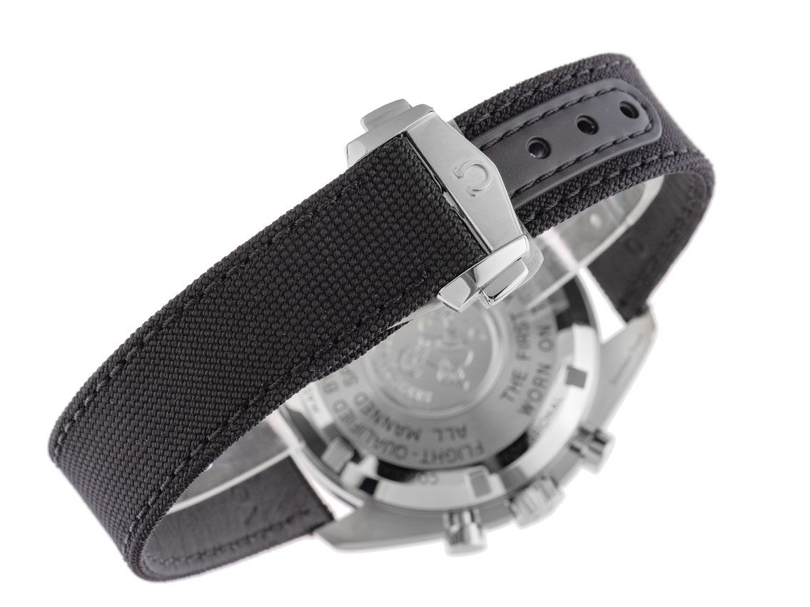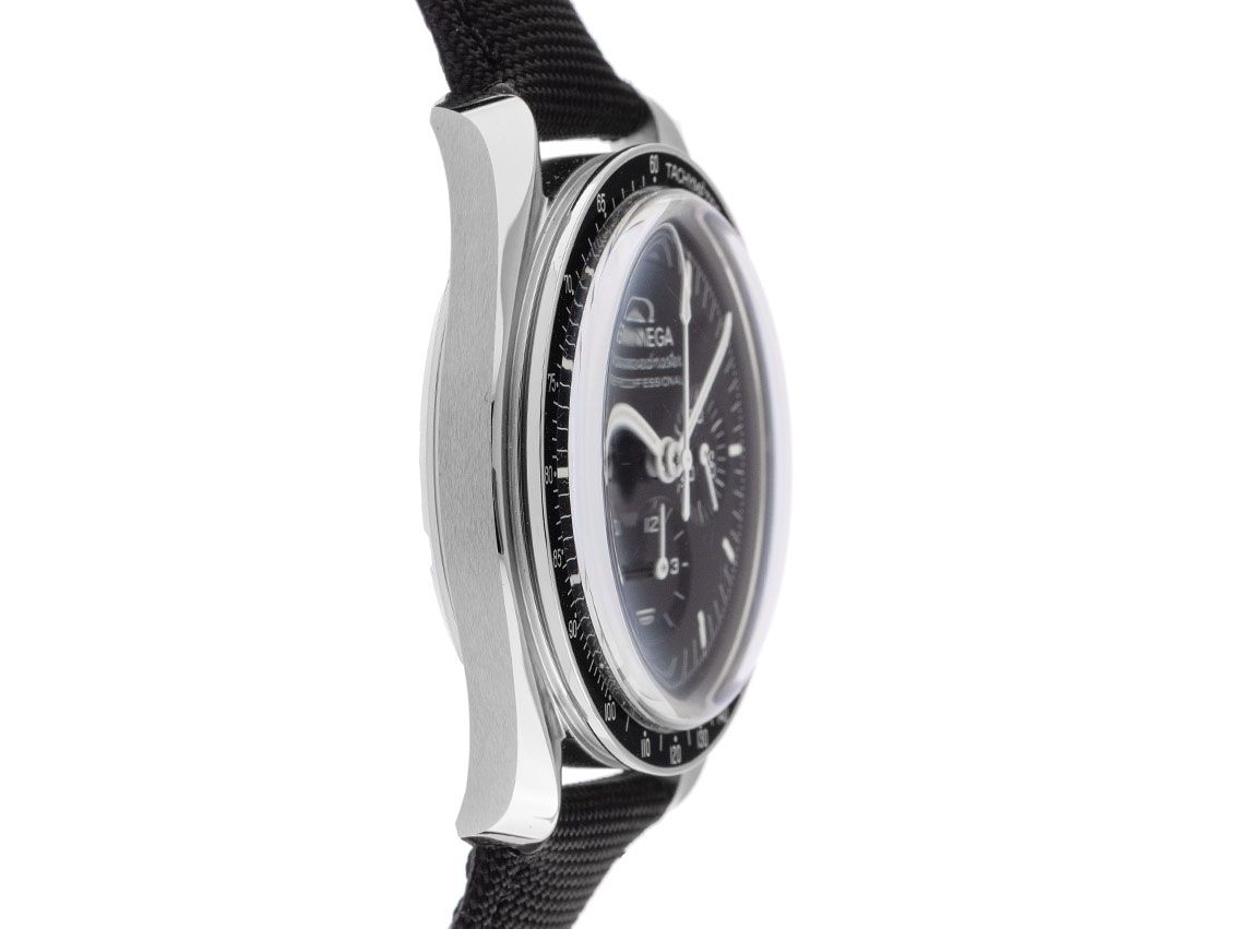 Omega Speedmaster Moonwatch Professional Stahl Handaufzug Chronograph Armband Textil Faltschließe