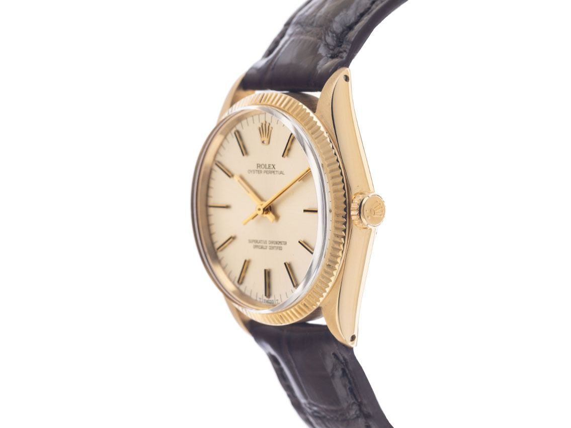 Rolex Oyster Perpetual 18kt Gelbgold Automatik Armband Leder