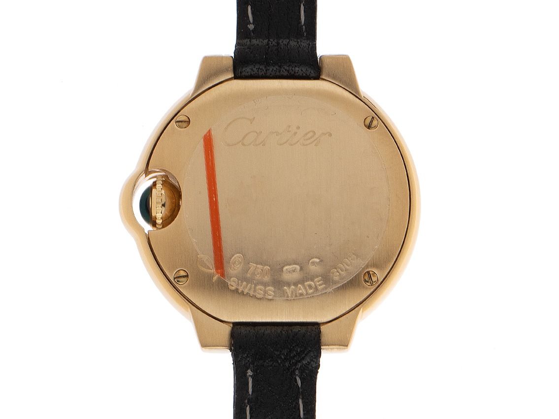 Cartier Ballon Bleu 18kt Gelbgold Quarz Armband Leder