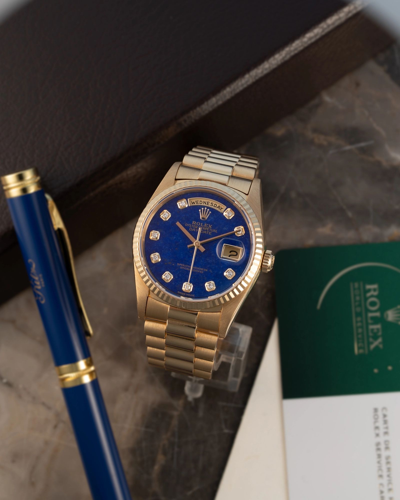 Rolex Day-Date "Lapis Lazuli" 18238 Blue 1989 with original box and papers