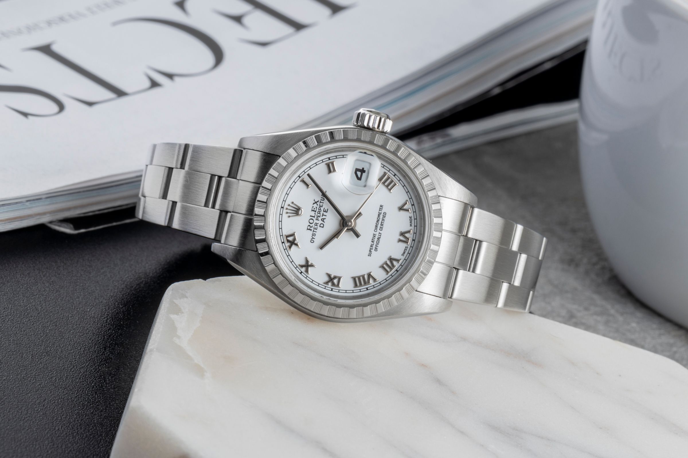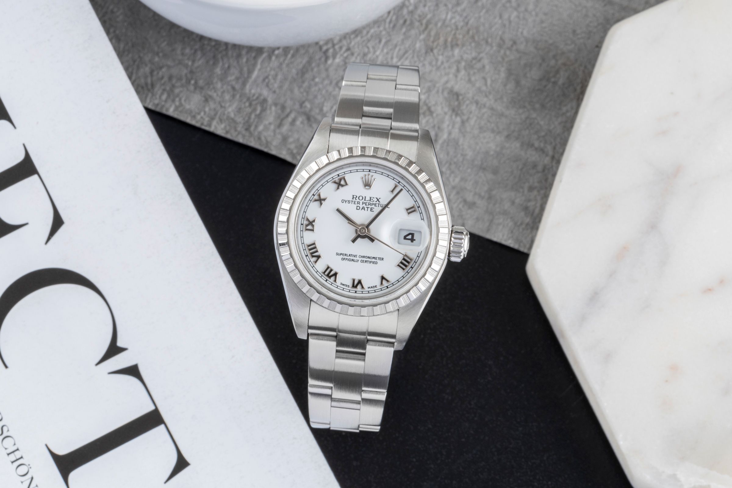 Alternative title: Rolex 79240 - Oyster Perpetual Lady Date; Rolex Lady Date White Roman Dial Automatik Edelstahl Oyster Perpetual Ref. 79240 [2506303]