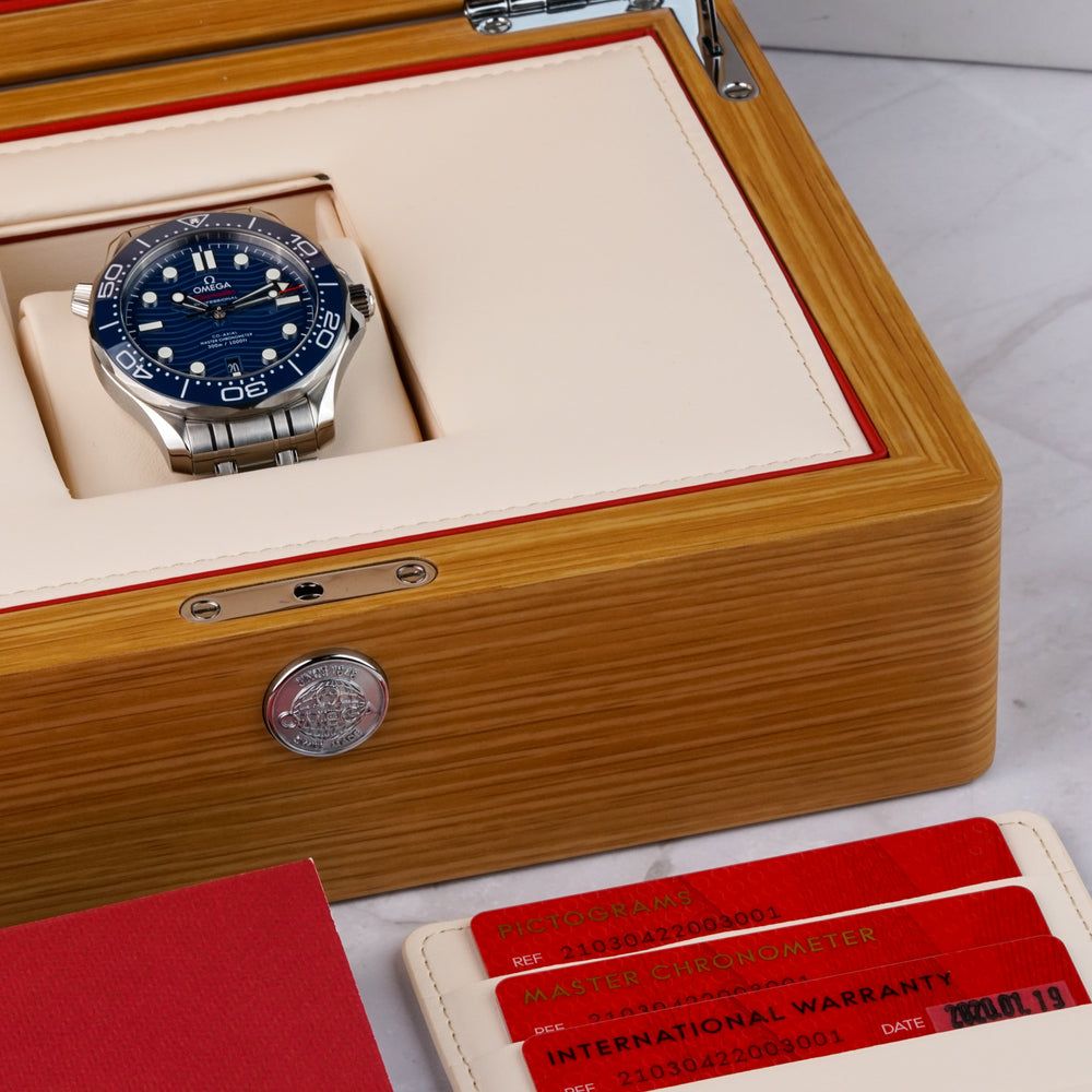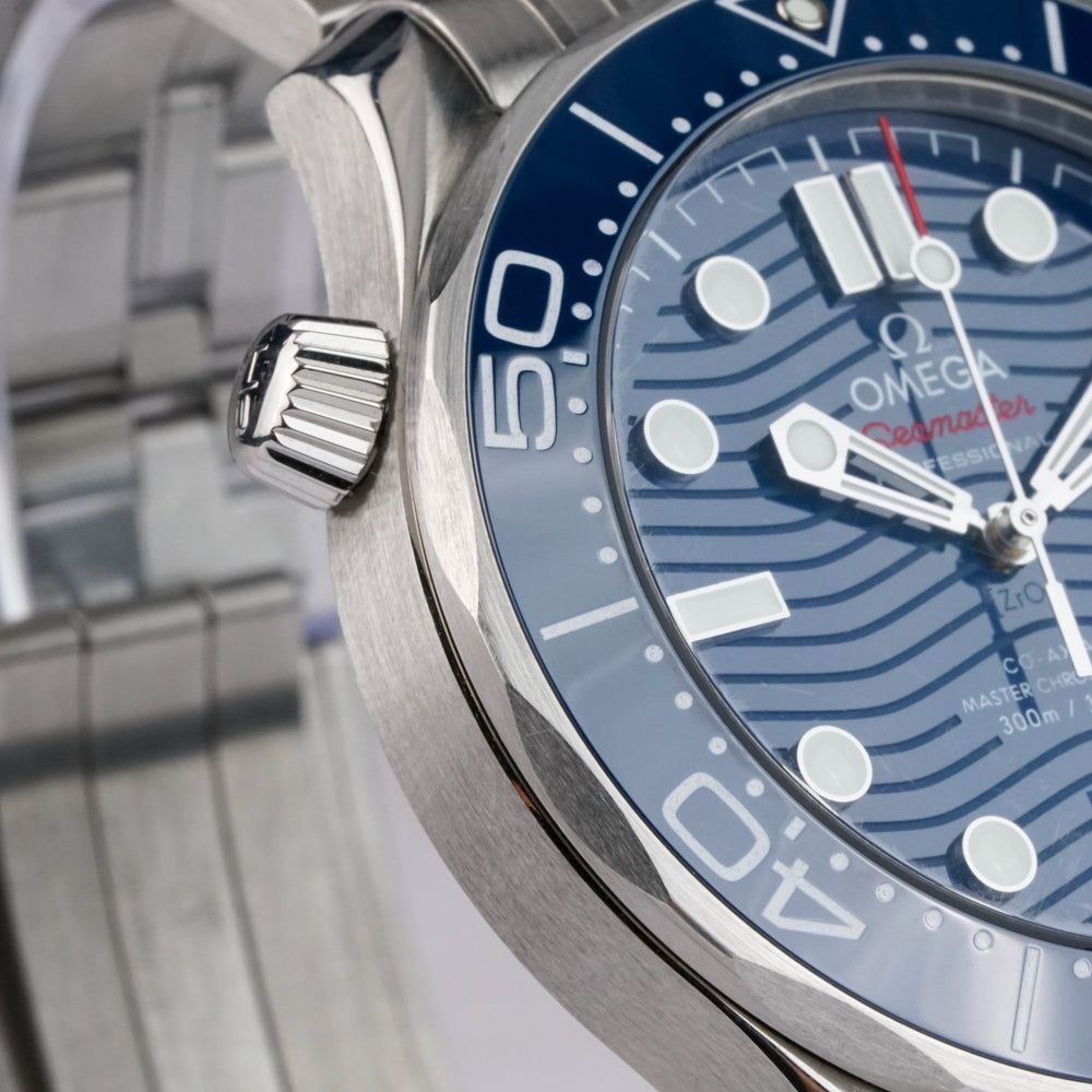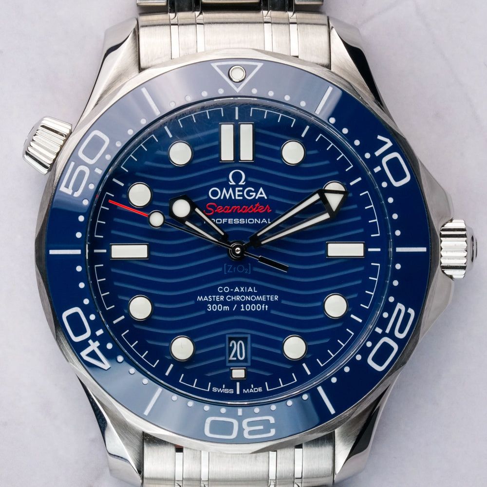 Omega Seamaster Diver 300M Co-Axial Master Chronometer 42mm. The Omega Seamaster Diver 300M (Ref. 210.30.42.20.03.001) features a 42 mm stainless-steel case, a matching steel bracelet, and a deep blue dial with a wave pattern inspired by the ocean.Powered by the Master Chronometer certified Co-Axial Caliber 8800, it offers outstanding precision, anti-magnetic performance, and reliability.