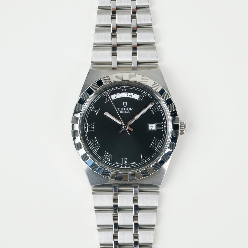 The Tudor Royal (Ref. M28600-0003) combines classic elegance with modern reliability.Featuring a 41 mm stainless steel case, a black dial with applied Roman numerals, and a notched bezel, this model offers a refined yet versatile look. Powered by the automatic Caliber T603 movement and fitted with an integrated stainless steel bracelet, the Tudor Royal delivers both comfort and precision in everyday wear.