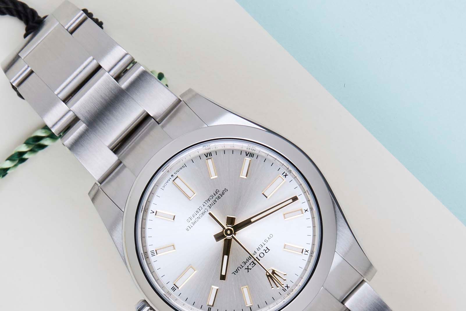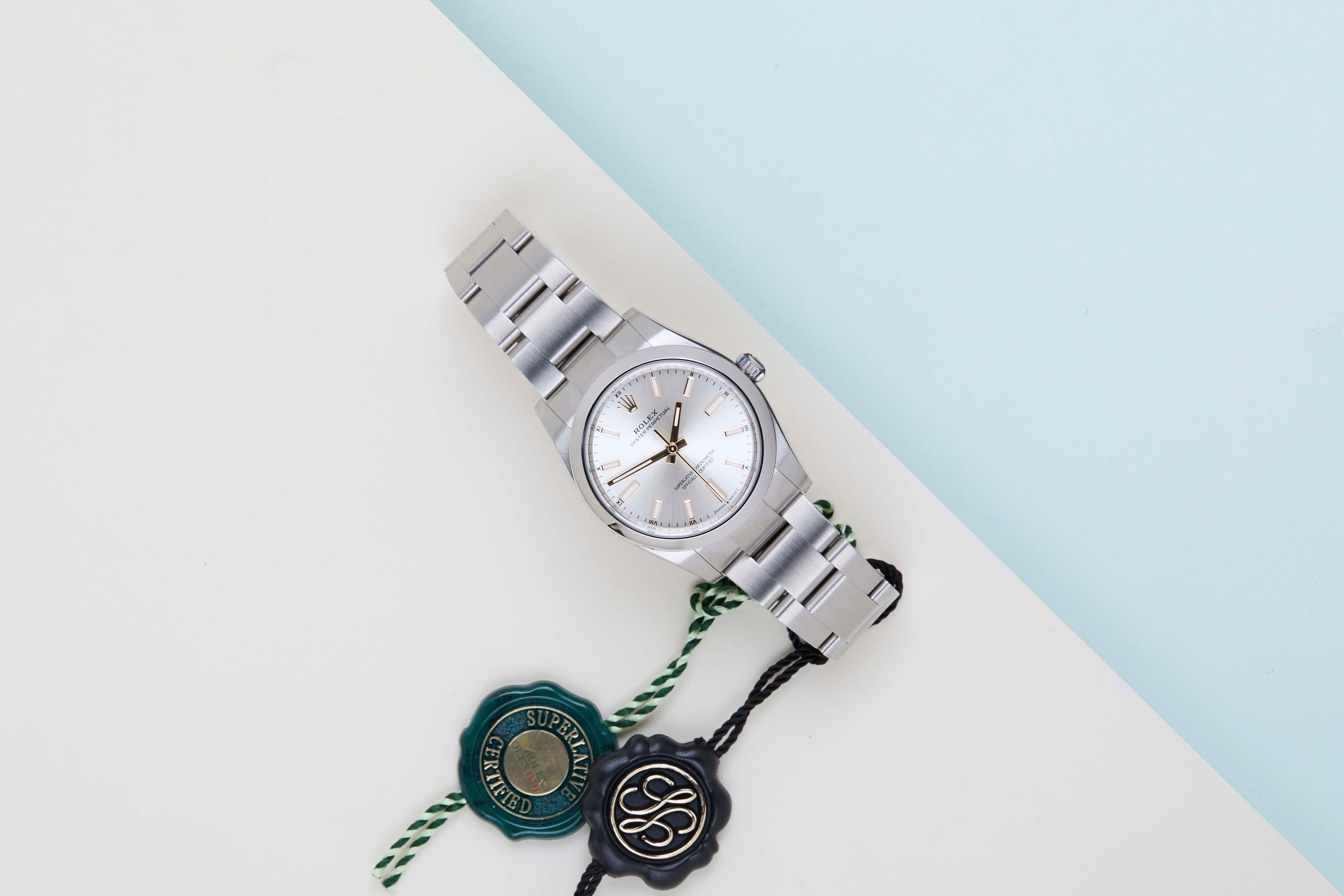 New & Unworn | Full Set | Partly Stickered | International Rolex Warranty until November 2030The Rolex Oyster Perpetual was first introduced by Rolex in the 1930s. It is characterized by its water-resistant Oyster case and self-winding Perpetual movement. The Rolex Oyster Perpetual is a simple, yet elegant timepiece that is suitable for both casual and formal wear.This Rolex Oyster Perpetual 34 'Silver Dial' was sold for the first time in November 2025.The watch is fully made out of stainless steel. Rolex uses 904L in its steel watches, which is an extremely resistant and highly polishable superalloy.This Rolex Oyster Perpetual 34 is in New & Unworn condition and comes with the original Rolex Warranty Card and box. Furthermore, the watch still has Worldwide Rolex Warranty until November 2030.