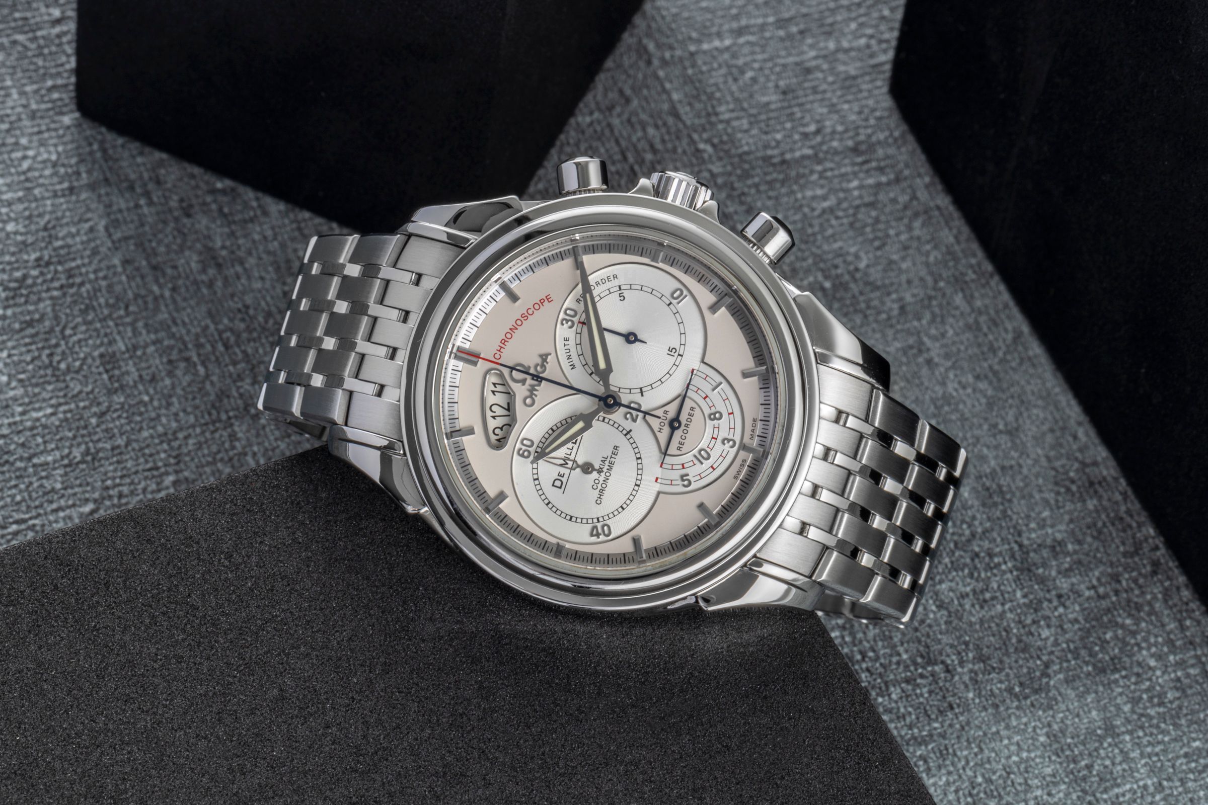 Alternative title: Omega 4550.30.00 - De Ville Co-Axial 41 Chronoscope Stainless Steel / Silver / Bracelet; Omega De Ville Chronograph Stahl Automatik Herrenuhr Ref. 4550.30.00 [2506914]