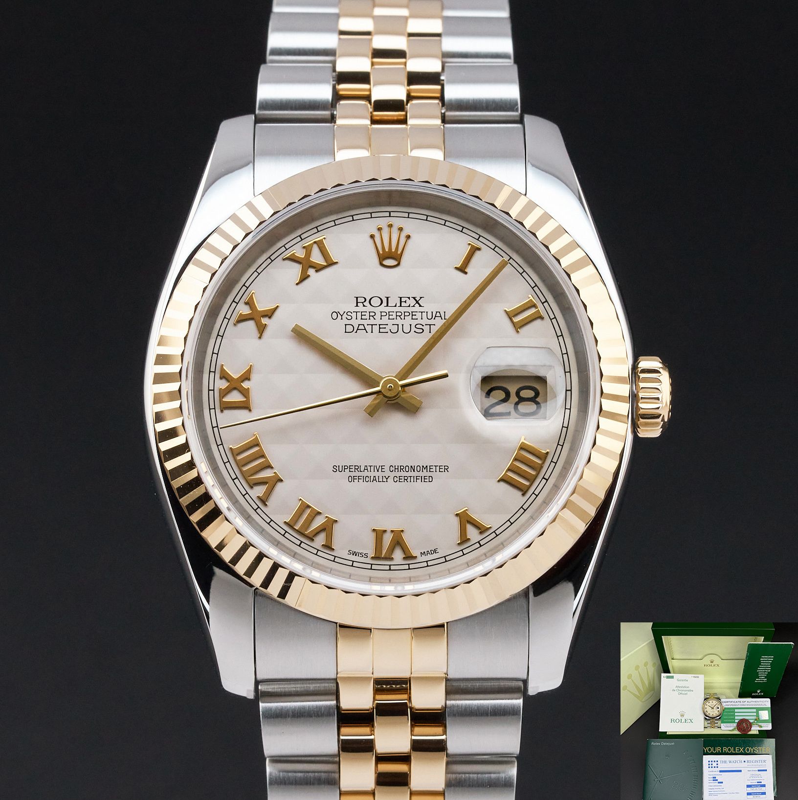 Rolex Datejust, 116233, 36mm, 2006, Two-Tone, Ivory Pyramid Roman dial, Fullset, 1y warranty