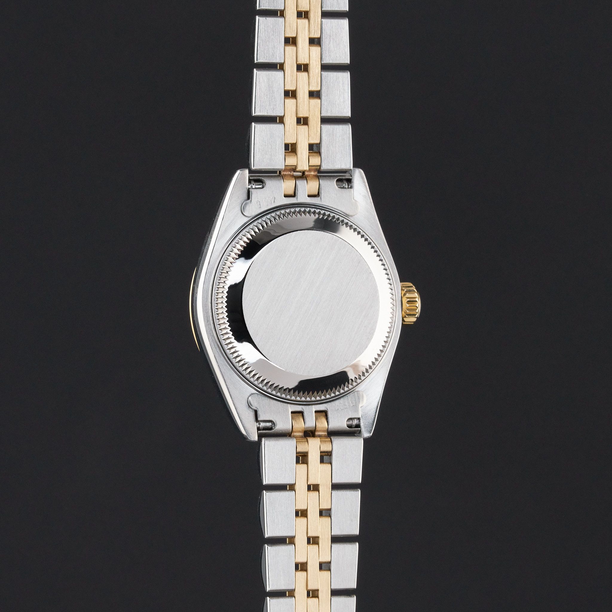 This Rolex Lady-Datejust 69173 features a White big diamond dial and is crafted from 18K yellow gold and stainless steel, with a production year of 1997.