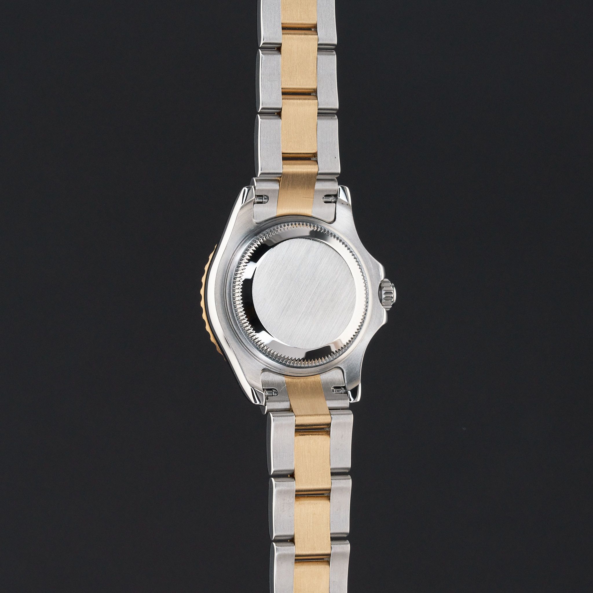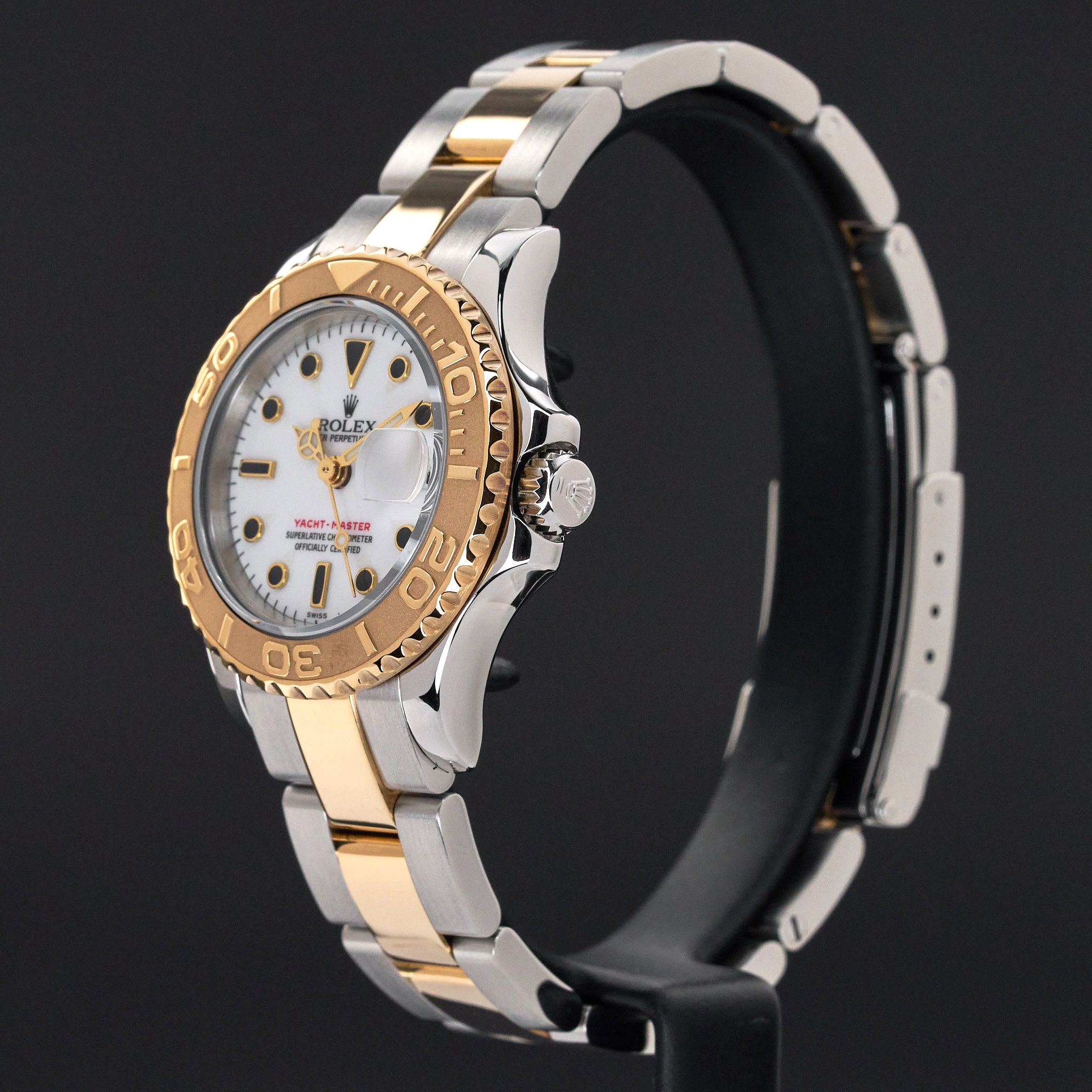 This Rolex Yacht-Master 69623 features a White dial and is crafted from 18K yellow gold and stainless steel, with a production year of 1997.
