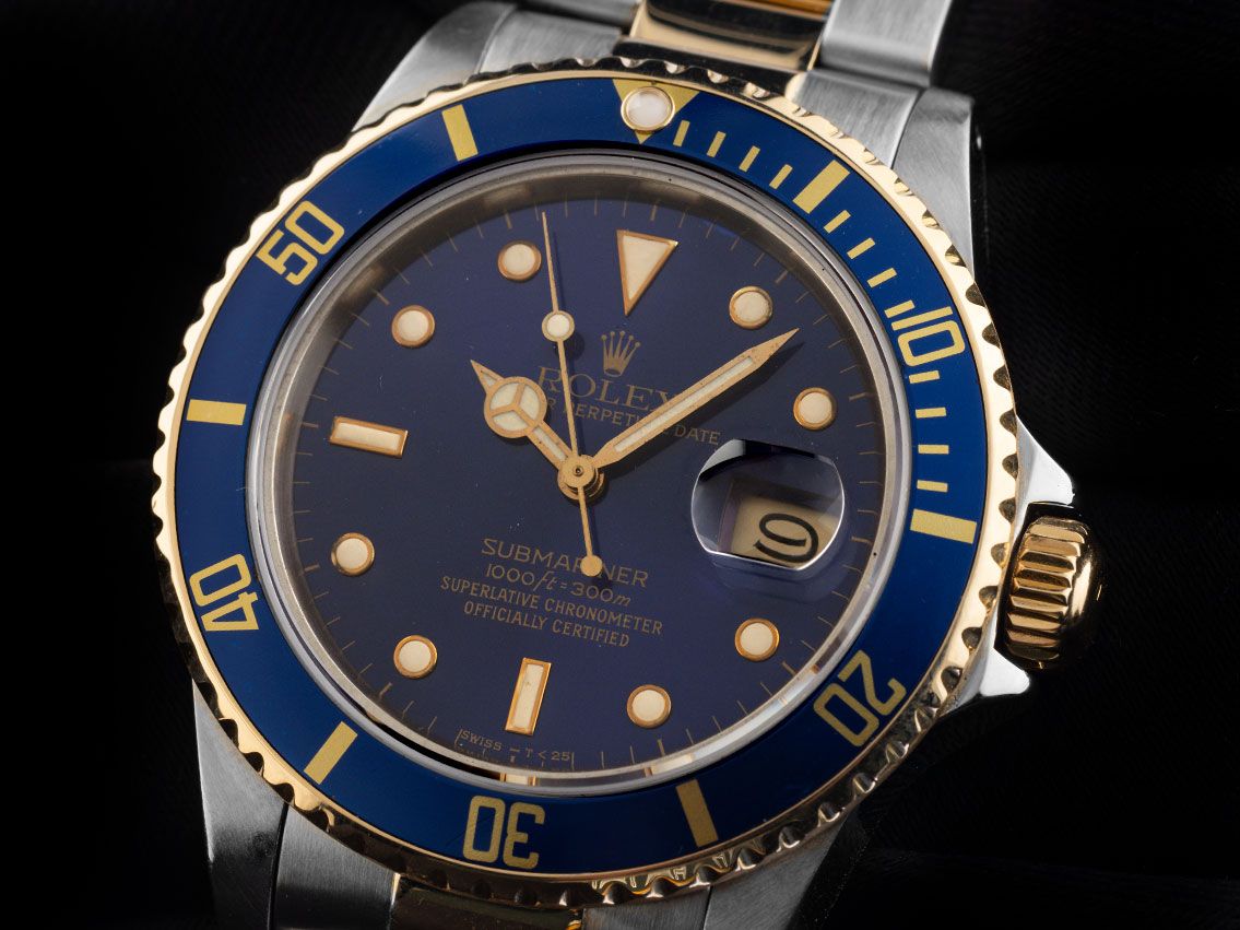 Gehäuse Edelstahl poliert und satiniert, Gehäusedurchmesser ohne Krone 40mm, Gehäusehöhe 12,5mm. Lünette 18kt Gelbgold geriffelt und poliert mit blauem Inlay und 60-Minuten Skala, einseitig drehbar. Armband Oyster Edelstahl / 18kt Gelbgold poliert und satiniert, Sicherheitsfaltschließe Edelstahl mit Hersteller-Logo. Zifferblatt blau mit aufgesetzten in Gelbgold gefassten Indexen und gelbgoldenen Zeigern. Uhrwerk Automatik, Chronometer mit Zeugnis, Rolex Manufakturkaliber 3035 mit 29 Edelsteinen. Anzeige von Stunde, Minute und Sekunde über Zeiger aus der Mitte mit Sekundenstopp zur sekundengenauen Einstellung der Uhrzeit, Datumsanzeige mit Schnellverstellung unter Glaslupe bei 3 Uhr, open 6/9 (offene 6 und 9 in der Datumsanzeige). Saphirglas kratzfest. Krone verschraubbar mit Flankenschutz und Hersteller-Logo. Boden Edelstahl verschraubt. Gewicht der Uhr inklusive Armband 132g, Länge des Armbandes inklusive Gehäuse 175mm. Referenznummer: 16803, Gehäusenummer: 8510XXX, ID: KA1414224120325H-14500, Artikelnummer: 10000079093. Mit Gangkontrolle und kompletter äußerlicher Aufarbeitung von März 2025, inkl. 1000 Tagen Garantie. Original Rolex Box mit Umkarton und Garantie Papiere von November 1985 sowie Beschreibung, Übersetzungsheft, Rolex Chronometer-Siegel und Watchregister Auszug von März 2025, The Watch Register Zertifikat / ohne Eintrag (Internationale Datenbank für verlorene oder gestohlene Uhren), LC 110/ France EU, Full Set. Superschnäppchen, Kapitalanlage mit Wertsteigerungspotential, extrem seltenes Sammlerstück. Sehr guter Zustand. Lieferzeit sofort.