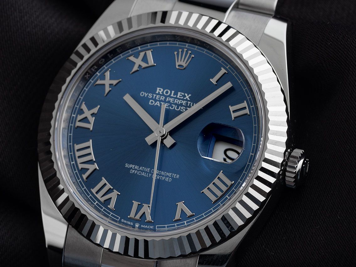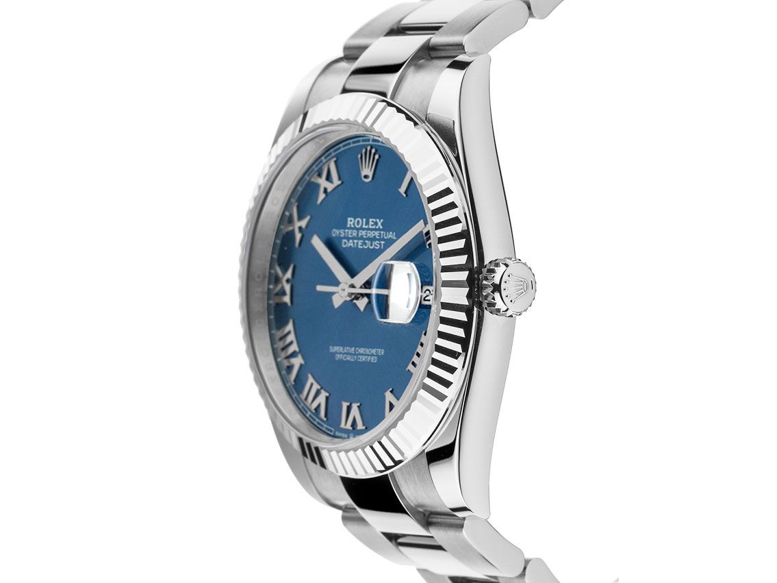 Gehäuse Edelstahl poliert und satiniert, Gehäusedurchmesser ohne Krone 41mm, Gehäusehöhe 11,6mm. Lünette 18kt Weißgold geriffelt und poliert. Armband Oyster Edelstahl poliert und satiniert, Rolex Faltschließe Edelstahl mit Hersteller-Logo. Zifferblatt blau mit aufgesetzten weißgoldenen römischen Ziffern und weißgoldenen Zeigern. Uhrwerk Automatik, Chronometer mit Zeugnis, Rolex Manufakturkaliber 3235 mit 31 Edelsteinen. Anzeige von Stunde, Minute und Sekunde über Zeiger aus der Mitte mit Sekundenstopp zur sekundengenauen Einstellung der Uhrzeit, Datumsanzeige mit Schnellverstellung unter Glaslupe bei 3 Uhr. Saphirglas kratzfest. Krone verschraubbar mit Hersteller-Logo. Boden Edelstahl verschraubt. Gewicht der Uhr inklusive Armband 142g, Länge des Armbandes inklusive Gehäuse 175mm. Wasserdicht bis 10 ATM. Referenznummer: 126334, ID: P1034232000625RE-15300/10800, Artikelnummer: 10000080722. Original Rolex Box mit Umkarton und Garantie Papiere von Oktober 2024, neue Rolex Garantie Karte ohne Ländercode sowie Beschreibung, Ledermäppchen, Rolex Chronometer-Siegel und Watchregister Auszug von Juni 2025, The Watch Register Zertifikat / ohne Eintrag (Internationale Datenbank für verlorene oder gestohlene Uhren), Full Set. Superschnäppchen, Kapitalanlage mit Wertsteigerungspotential. Ungetragen. Lieferzeit sofort.