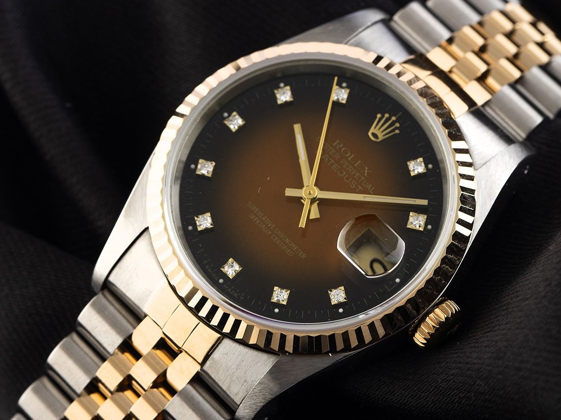Gehäuse Edelstahl poliert und satiniert, Gehäusedurchmesser ohne Krone 31mm, Gehäusehöhe 11,0mm. Lünette 18kt Gelbgold geriffelt und poliert. Armband Jubilé Edelstahl / 18kt Gelbgold poliert und satiniert, Faltschließe Edelstahl mit Hersteller-Logo. Zifferblatt schwarz / braun verlaufend mit 10 aufgesetzten Diamantindexen und gelbgoldenen Zeigern. Uhrwerk Automatik, Chronometer mit Zeugnis, Rolex Manufakturkaliber 2135 mit 29 Edelsteinen. Anzeige von Stunde, Minute und Sekunde über Zeiger aus der Mitte mit Sekundenstopp zur sekundengenauen Einstellung der Uhrzeit, Datumsanzeige mit Schnellverstellung unter Glaslupe bei 3 Uhr, open 6/9 (offene 6 und 9 in der Datumsanzeige). Saphirglas kratzfest. Krone verschraubbar mit Hersteller-Logo. Boden Edelstahl verschraubt. Gewicht der Uhr inklusive Armband 70g, Länge des Armbandes inklusive Gehäuse 155mm. Referenznummer: 68273, Gehäusenummer: L349XXX, Baujahr: 1988, ID: P1231136000725H-10500, Artikelnummer: 10000081572. Mit Gangkontrolle und kompletter äußerlicher Aufarbeitung von Juli 2025. Original Rolex Box mit Umkarton und Garantie Papiere von Juli 1989, LC 430 / Singapur sowie Beschreibung, Übersetzungsheft, Ledermäppchen, Tag, Rolex Chronometer-Siegel und Watchregister Auszug von Juli 2025, The Watch Register Zertifikat / ohne Eintrag (Internationale Datenbank für verlorene oder gestohlene Uhren), Full Set. Superschnäppchen, Kapitalanlage mit Wertsteigerungspotential, extrem seltenes Sammlerstück, Tresoruhr, fast nicht getragen. Sehr guter Zustand. Lieferzeit sofort.