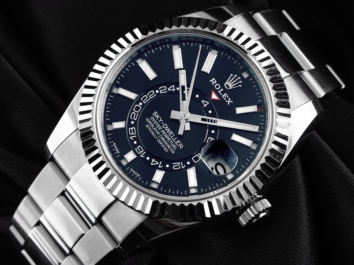 Rolex Sky-Dweller Blue Stahl 18kt Weißgold Automatik Armband Oyster