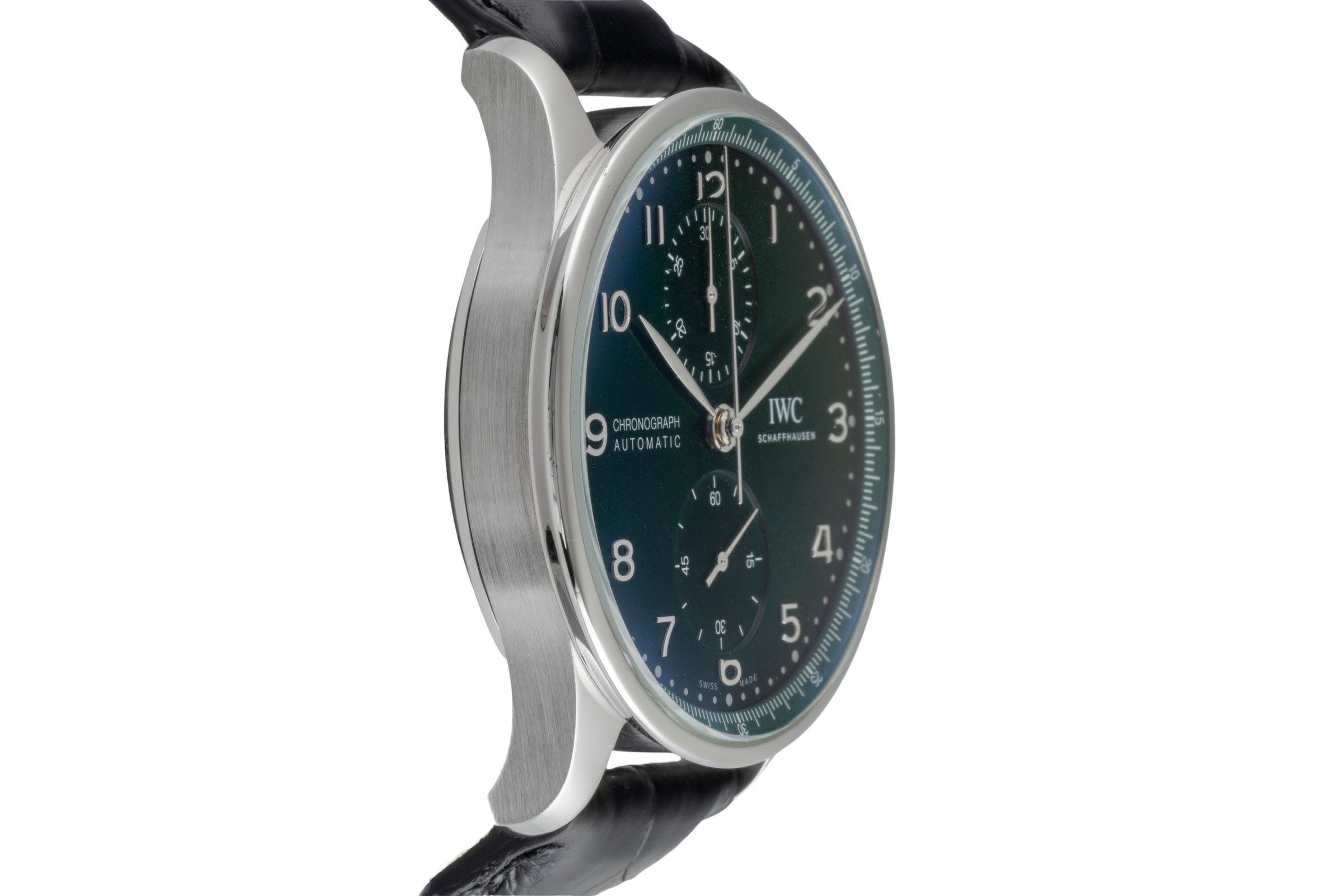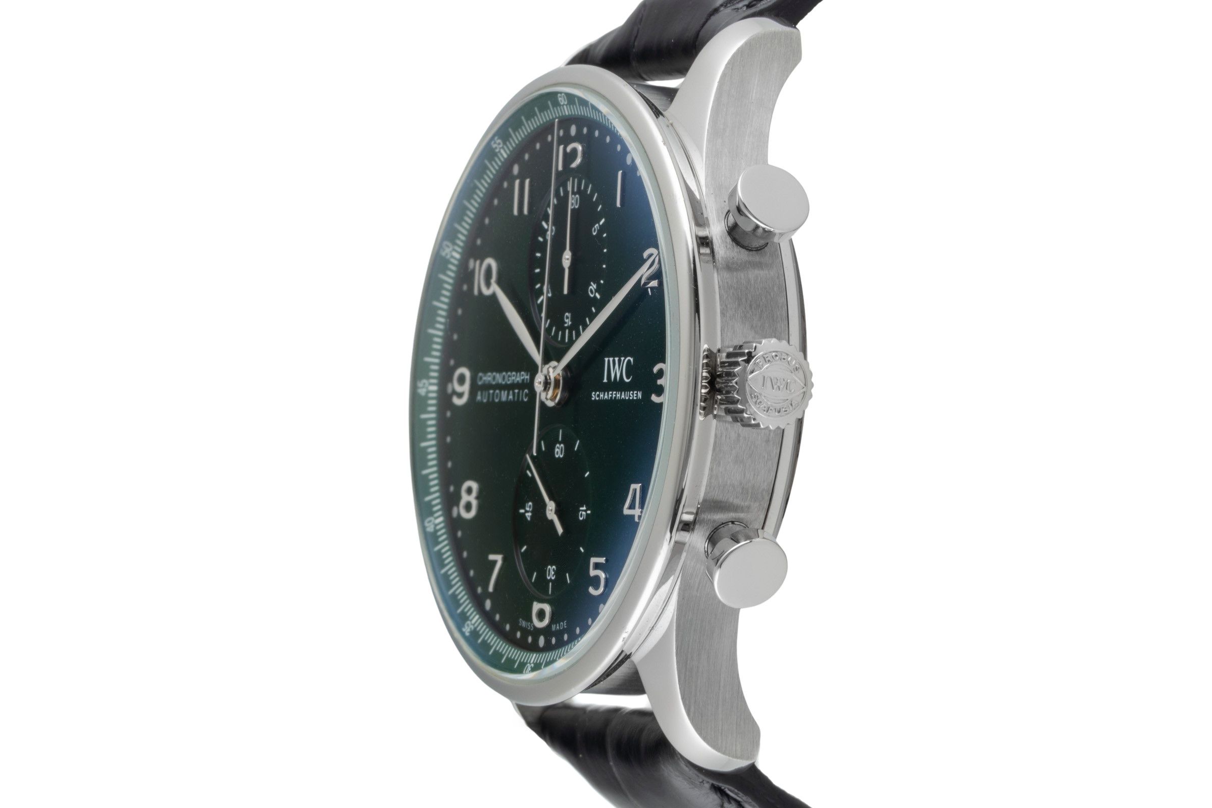 Alternative title: IWC IW371615 Portugieser Chronograph Stainless Steel / Green; IWC Portugieser Chronograph Green Dial Stahl Automatik Herrenuhr IW371615 B&P [2506803]