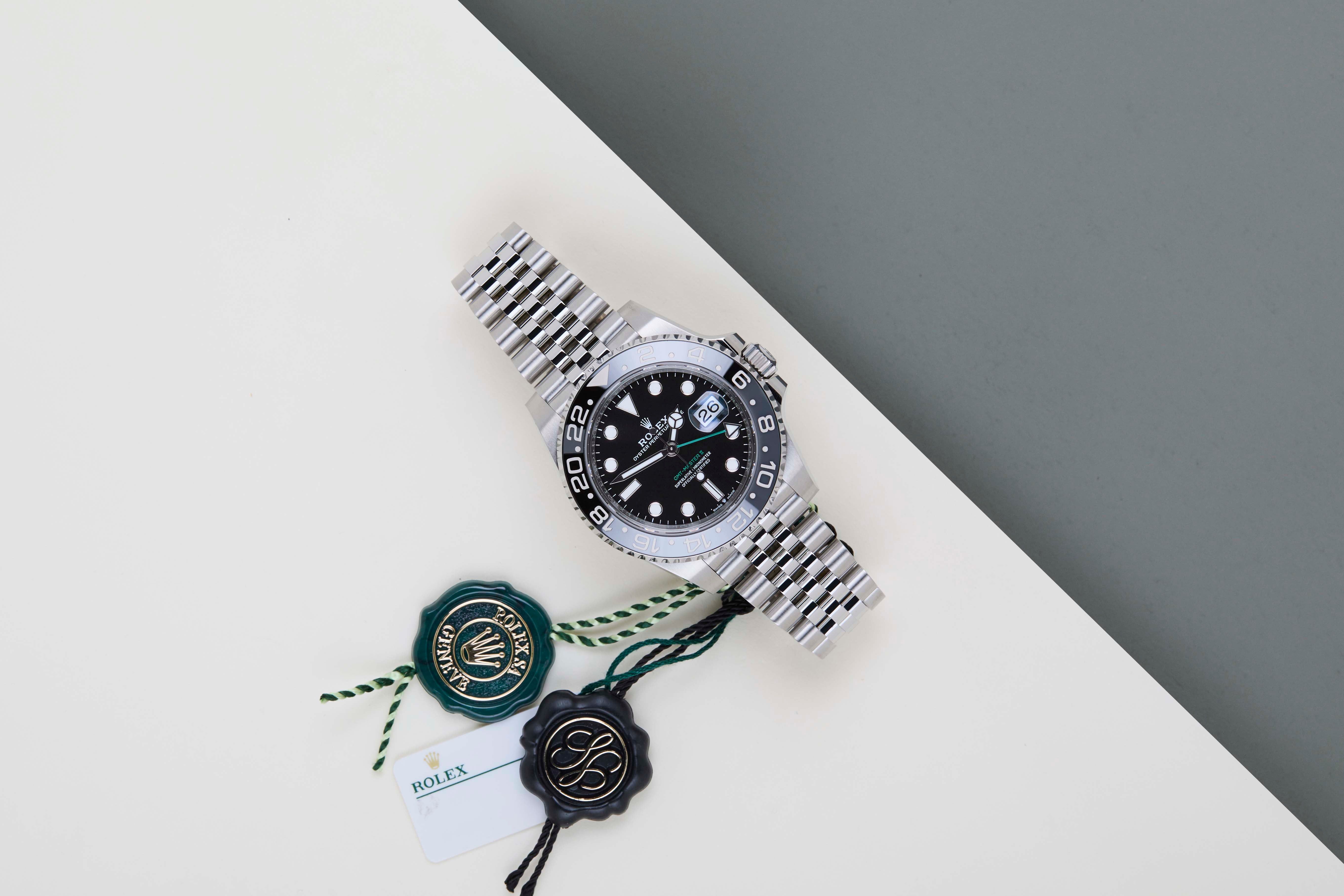 New & Unworn | Full Set | International Rolex Warranty Until December 2030 | Including White TagThe Rolex GMT was originally designed in collaboration with Pan American Airways and issued to their crews on long-haul flights. The dual time zone can track local and home time, which is a useful tool for pilots and those who are traveling a lot across different time zones.The reference 126710 is the second generation of the GMT-Master II with a Ceramic Bezel. The material to make this bezel is called 'Cerachrom', which was developed completely in-house by Rolex to be highly scratch-resistant.This GMT is equipped with the Black and Grey Bezel, which can be derived from the reference 126710GRNR, Lunette Gris Noir.This GMT-Master is made of stainless steel and is fitted with a Jubilee bracelet, which is equipped with the Easylink. This extension, allows the wearer to either extend or shorten the bracelet by 5 millimeters, improving the wearability and usability of the watch.This Rolex GMT-Master II is New & Unworn and comes with the original Rolex Warranty Card and Box. Furthermore, the watch still has International Rolex Warranty until December 2030.