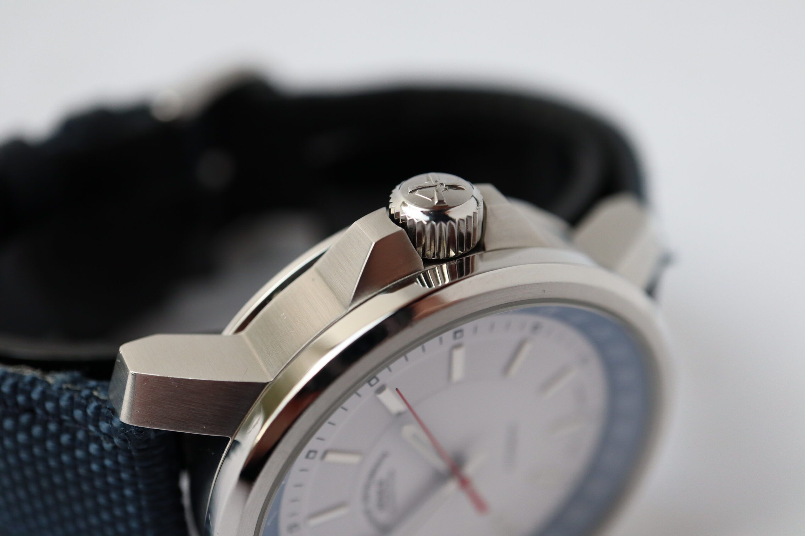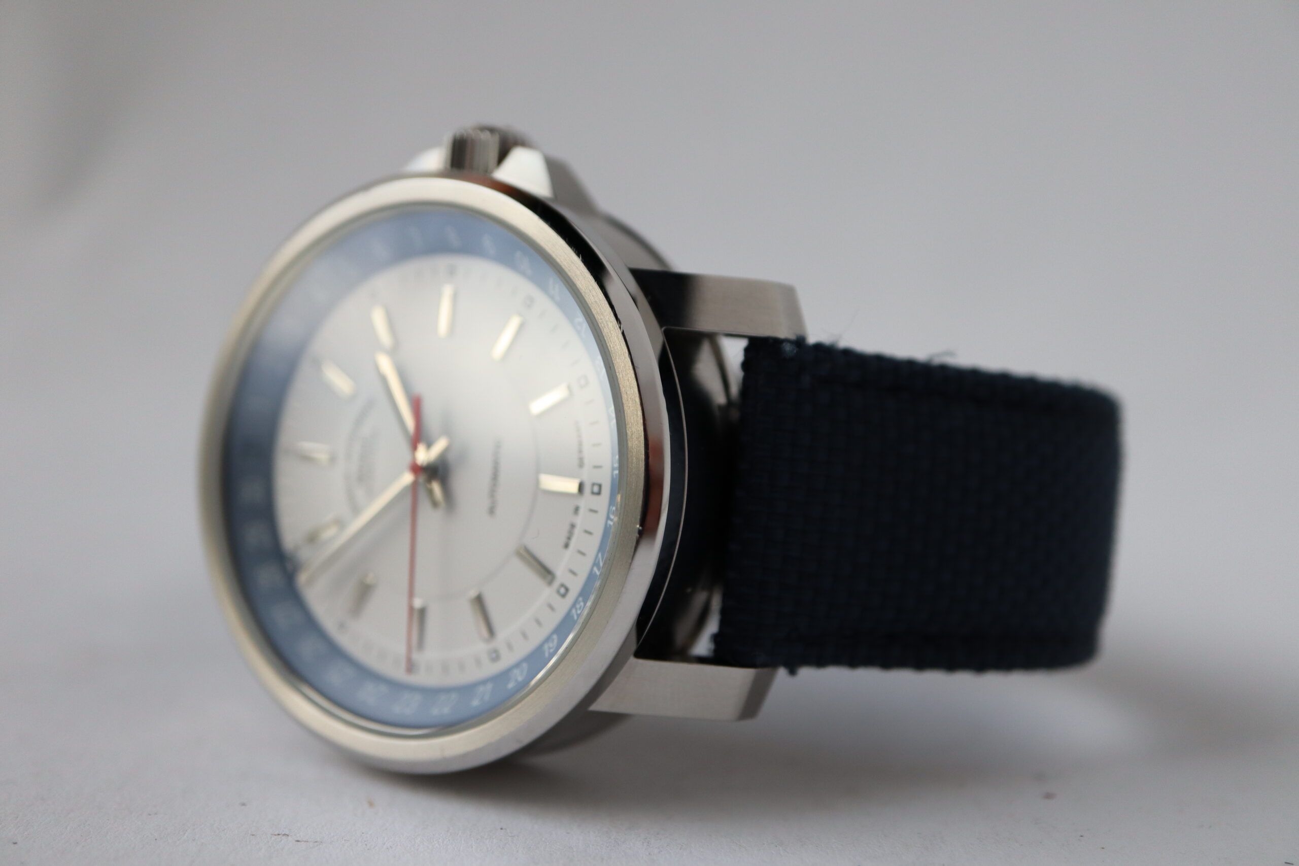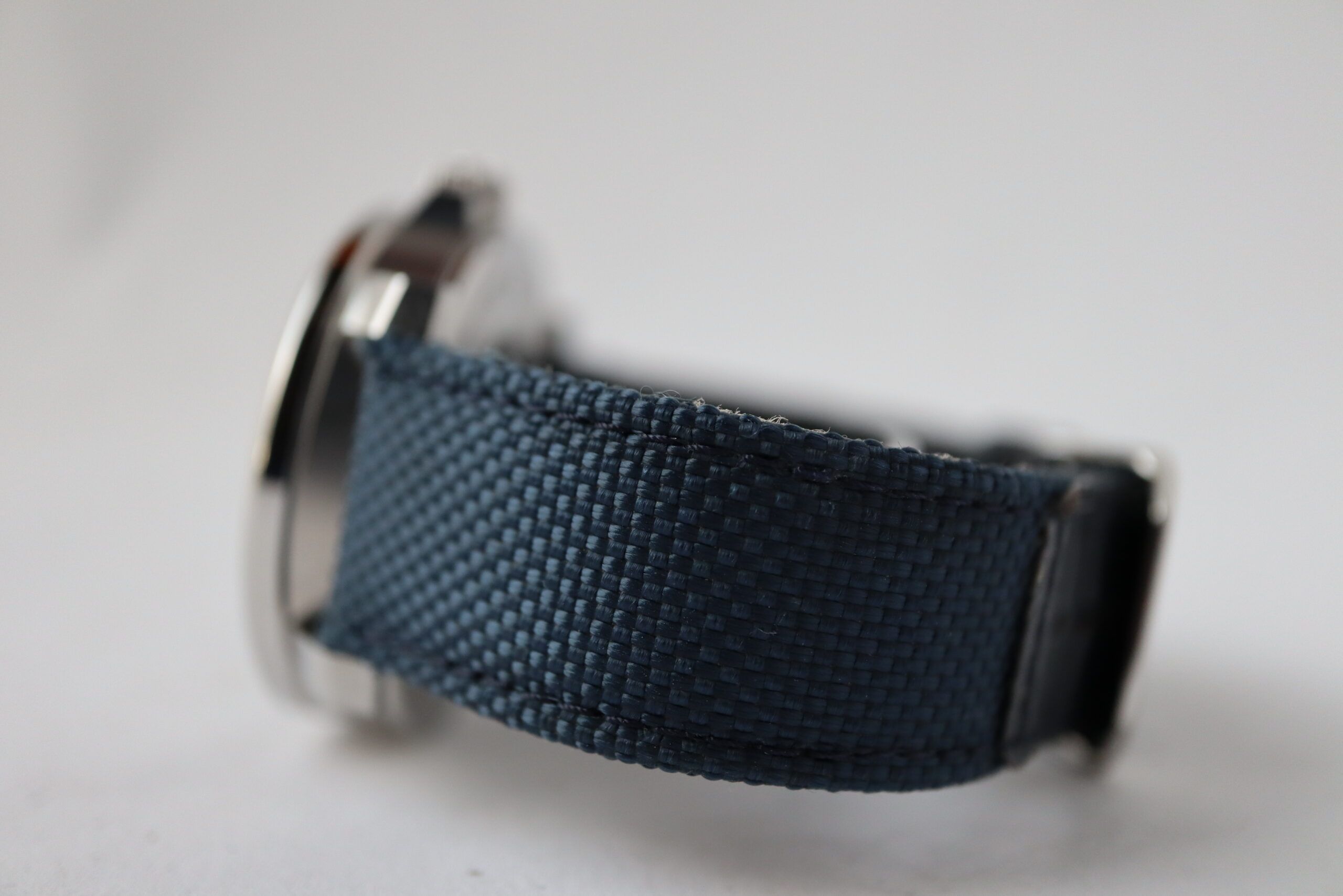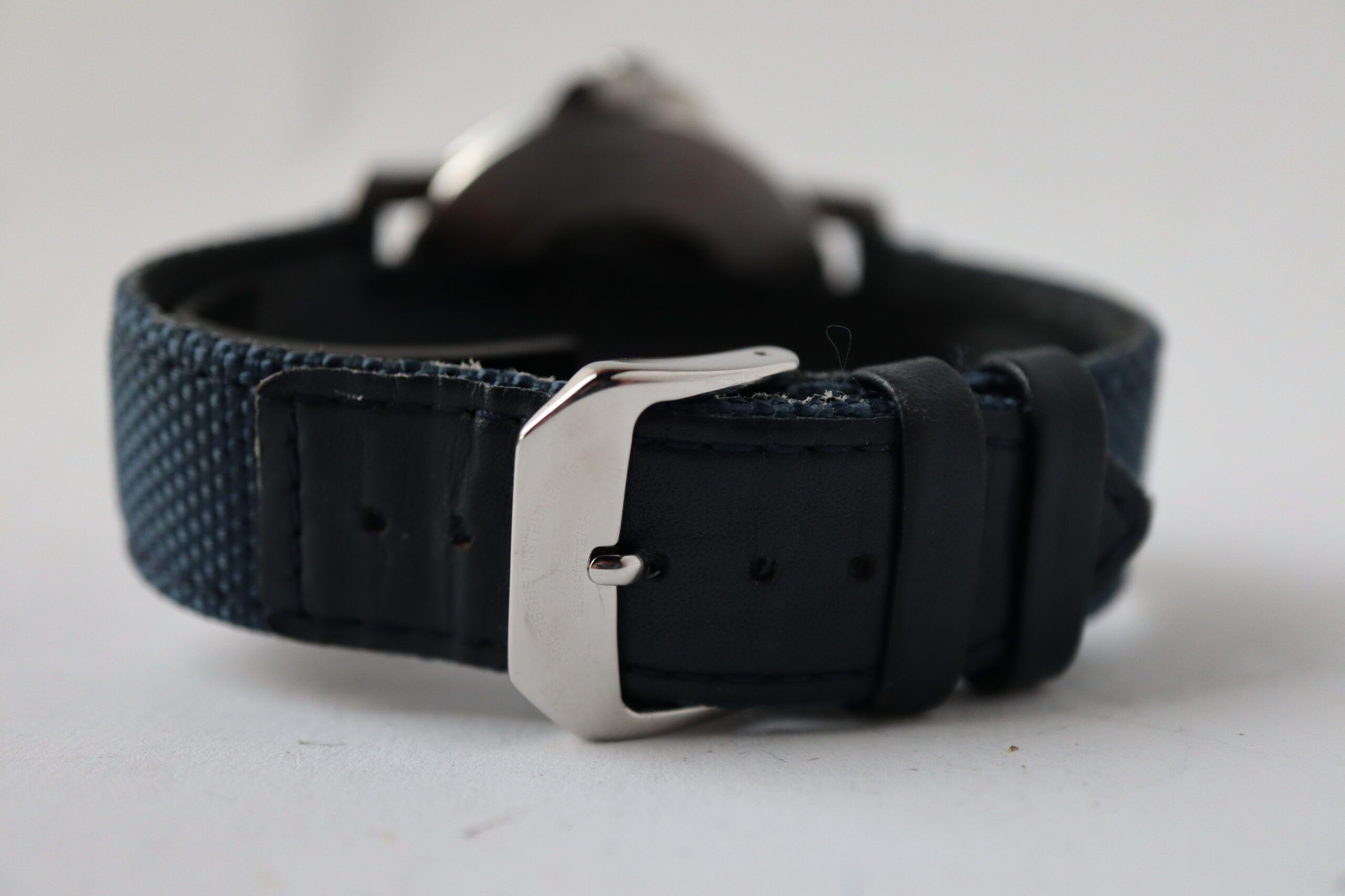 Muhle Glashutte Watch 29er Zeigerdatum M1-25-32-NB. A sporty timepiece for everyone who wants to set a steady course without running aground. The analogue Zeigerdatum brings an element of watchmaking nostalgia to its wearers day to day lives and enables them to navigate their way through the seas of time in a relaxed yet highly precise manner. The face is framed by the Zeigerdatums light blue weekday display on the flange. This type of date display features a date hand that makes one revolution around its axis every 31 days and provides an analogue display of the current day, which is framed by a classic dark blue crescent on the tip of the hand. In contrast with the watch's waves of blue colour, its red second-hand clearly stands out against the face and emphasises the timepiece's sporty design. Although dynamic sailing is important on the high seas, maximum precision and complete reliability play an even more essential role when it comes to setting a secure course.
