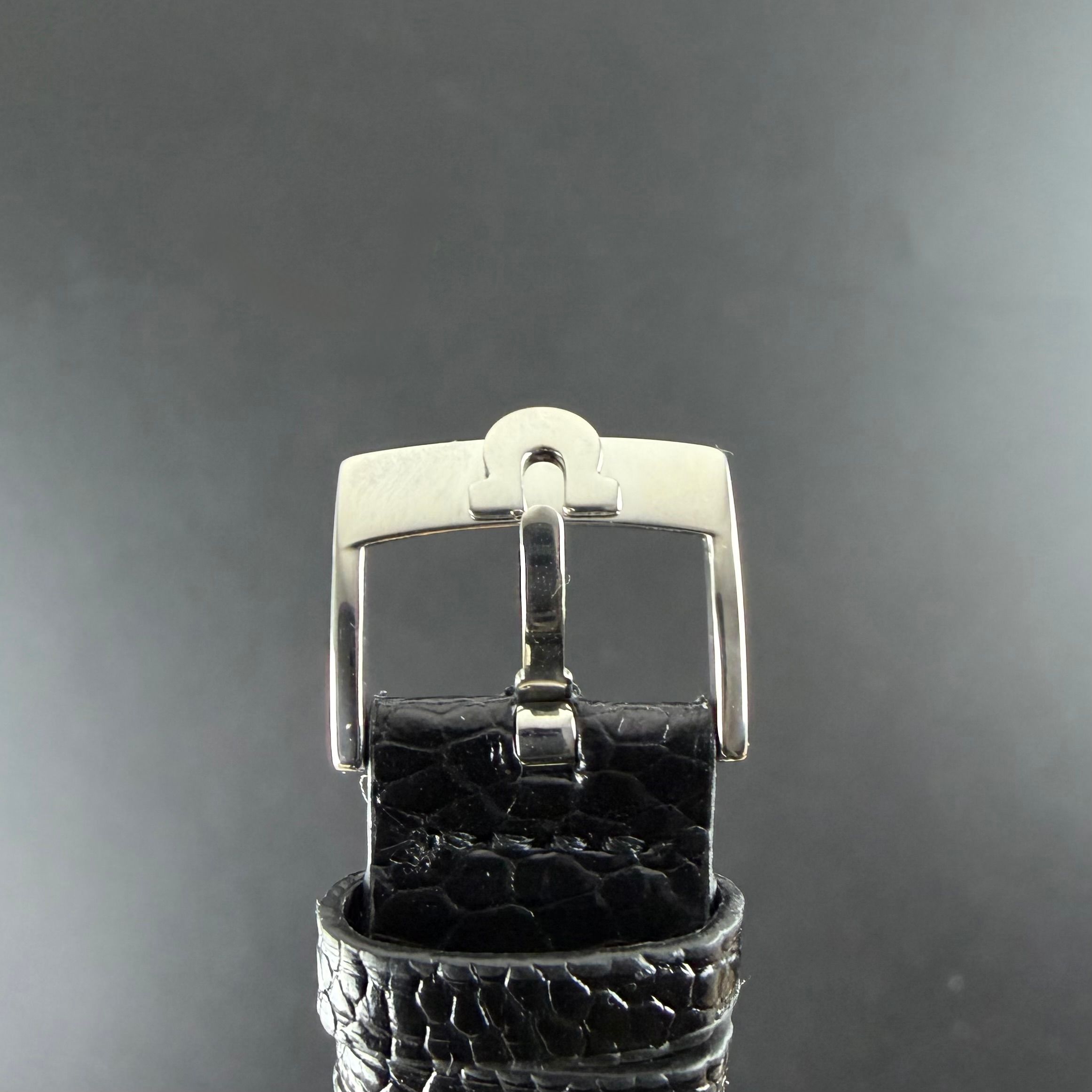 Strap: A grade III black calf leather strap with a crocodile grain and light glossy finish. (Fits a 12 to 20cm wrist)