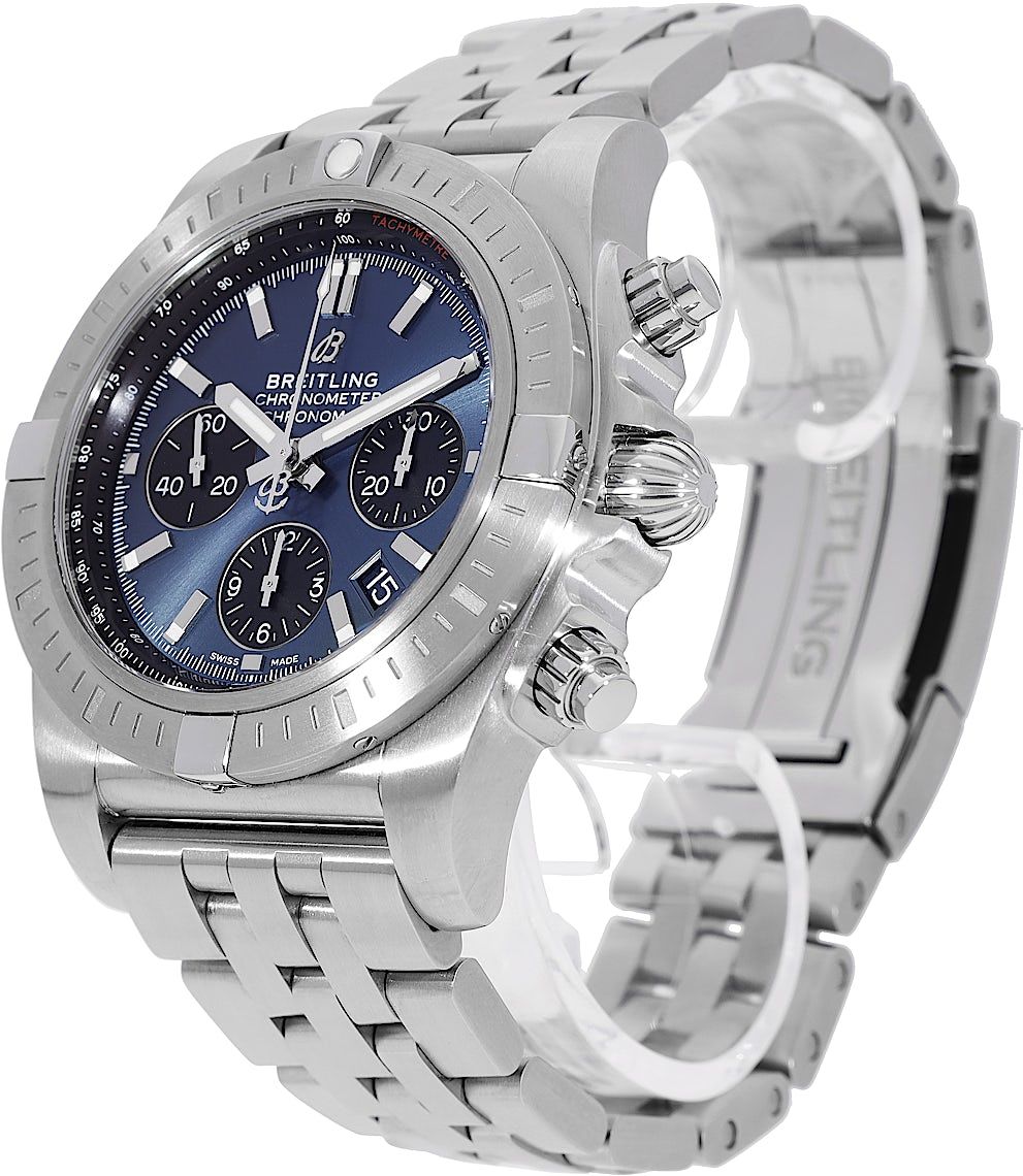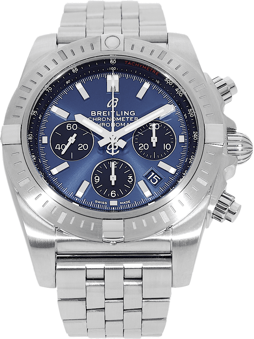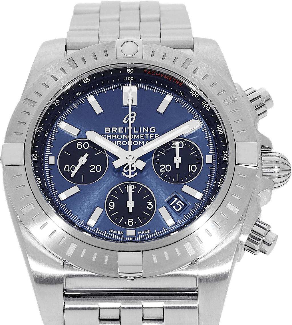 Breitling Chronomat 45, Reference: AB0115101C1A1, Gender: Male, Size: 44mm, Dial color: Blue, Strap material: Stainless Steel, Movement: Automatic, Year: 2024, Condition: New and unworn. An inspection by our certified watchmakers guarantees authenticity., Documents: Original papers, CHRONEXT Certificate