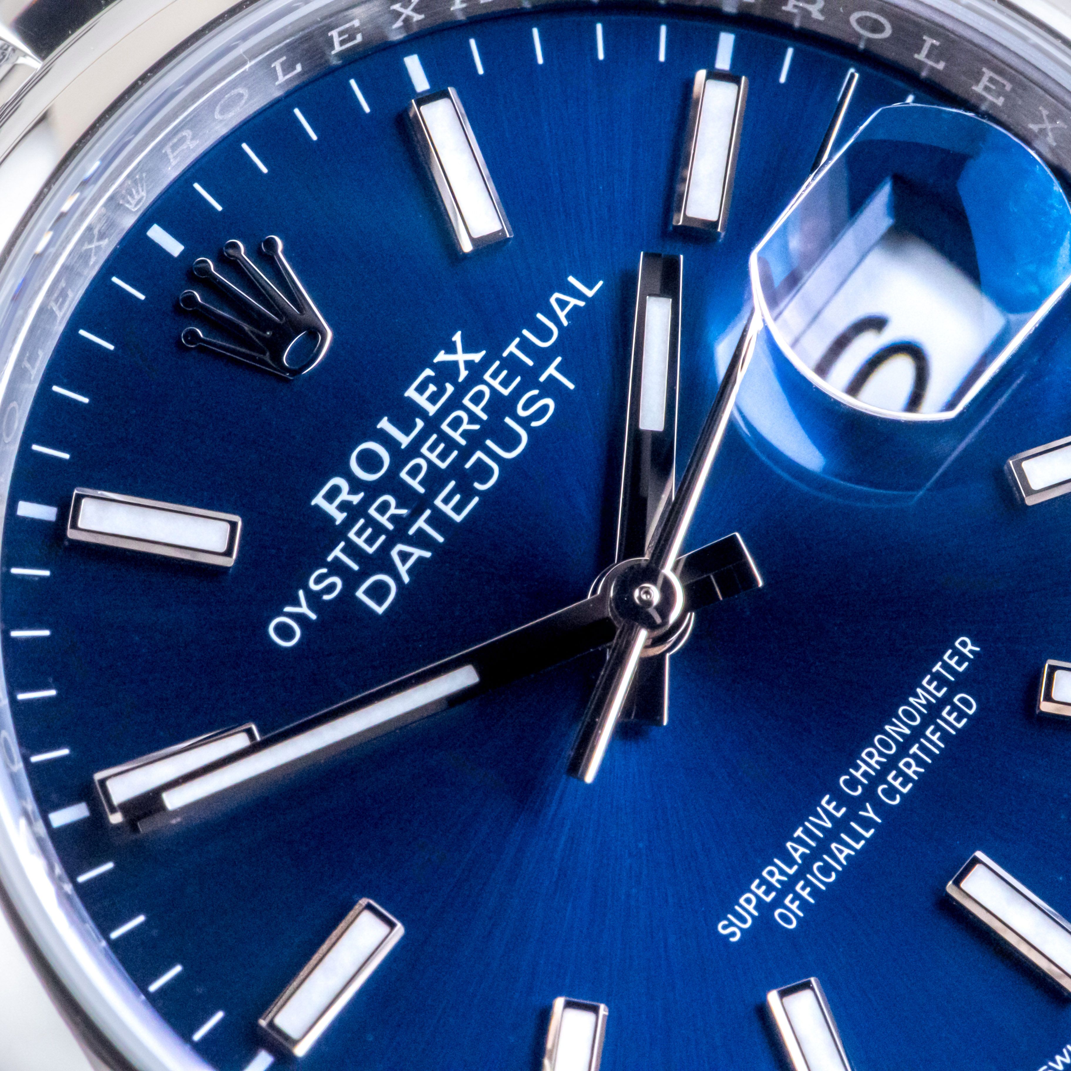Rolex Oyster Perpetual Datejust reference 126200 from 2025 including full set. The Datejust 126200 measures a 36mm stainless steel case, a stainless steel Oyster bracelet with Oysterclasp and a stainless steel smooth bezell. This Datejust 126200 features an automatic movement caliber 3235 with quickset date function, scratch resistance sapphire crystal and a blue dial with chromalight hands and markers.