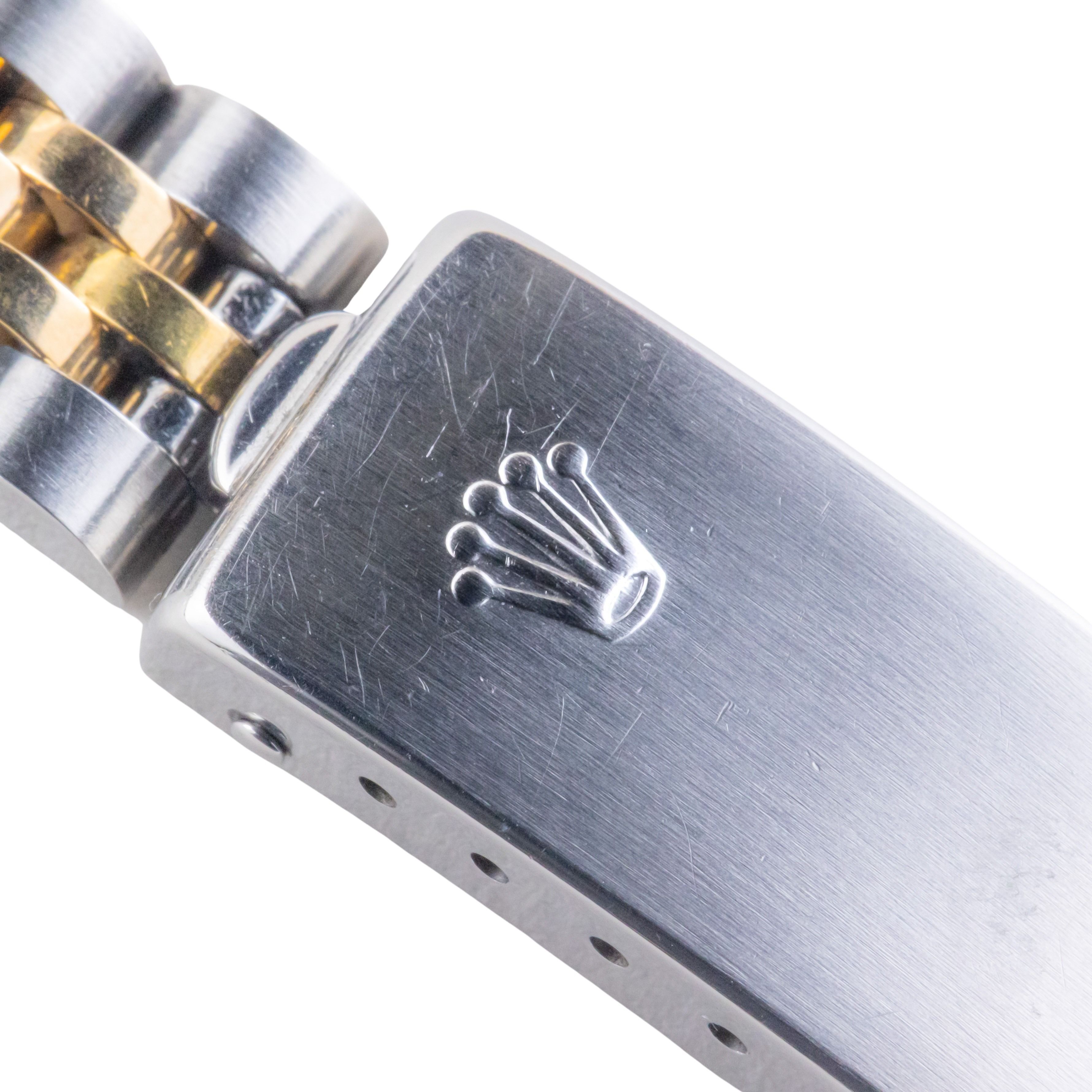 Rolex Oyster Perpetual Lady-Datejust reference 69173 from 1990 including full set. The Lady-Datejust 69173 measures a 26mm gold and stainless steel case, two-tone jubilee bracelet and fluted 14k gold bezel. This Lady-Datejust 69173 features an automatic movement caliber 2135 with quickset date function, a scratch resistance sapphire crystal and a champagne dial w/ tritium hands and Arabic markers.