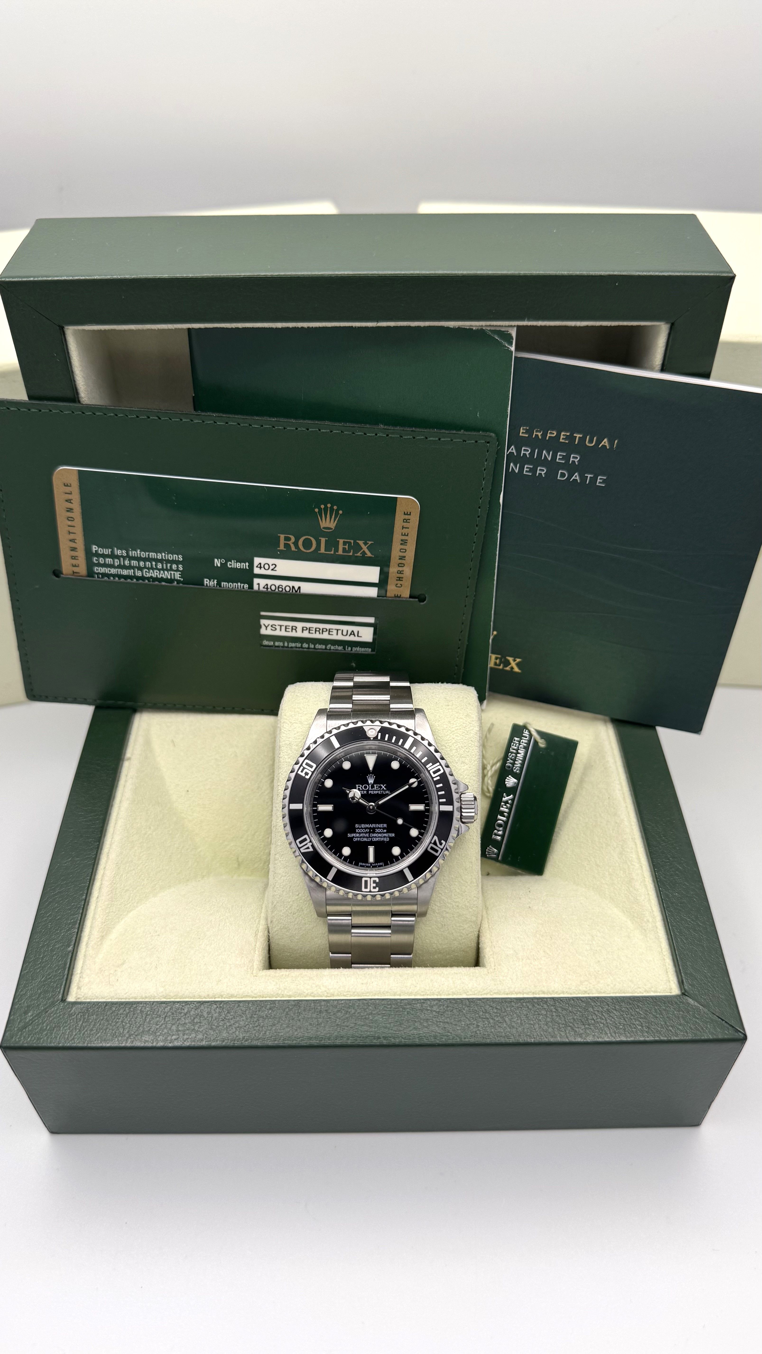 Eine seltene Gelegenheit, eine Submariner 14060M aus den letzten Produktionsjahren in außergewöhnlichem Zustand, periodenkorrekt im Fullset und mit gravierter Rehaut zu einem sehr fairen Preis zu erwerben.