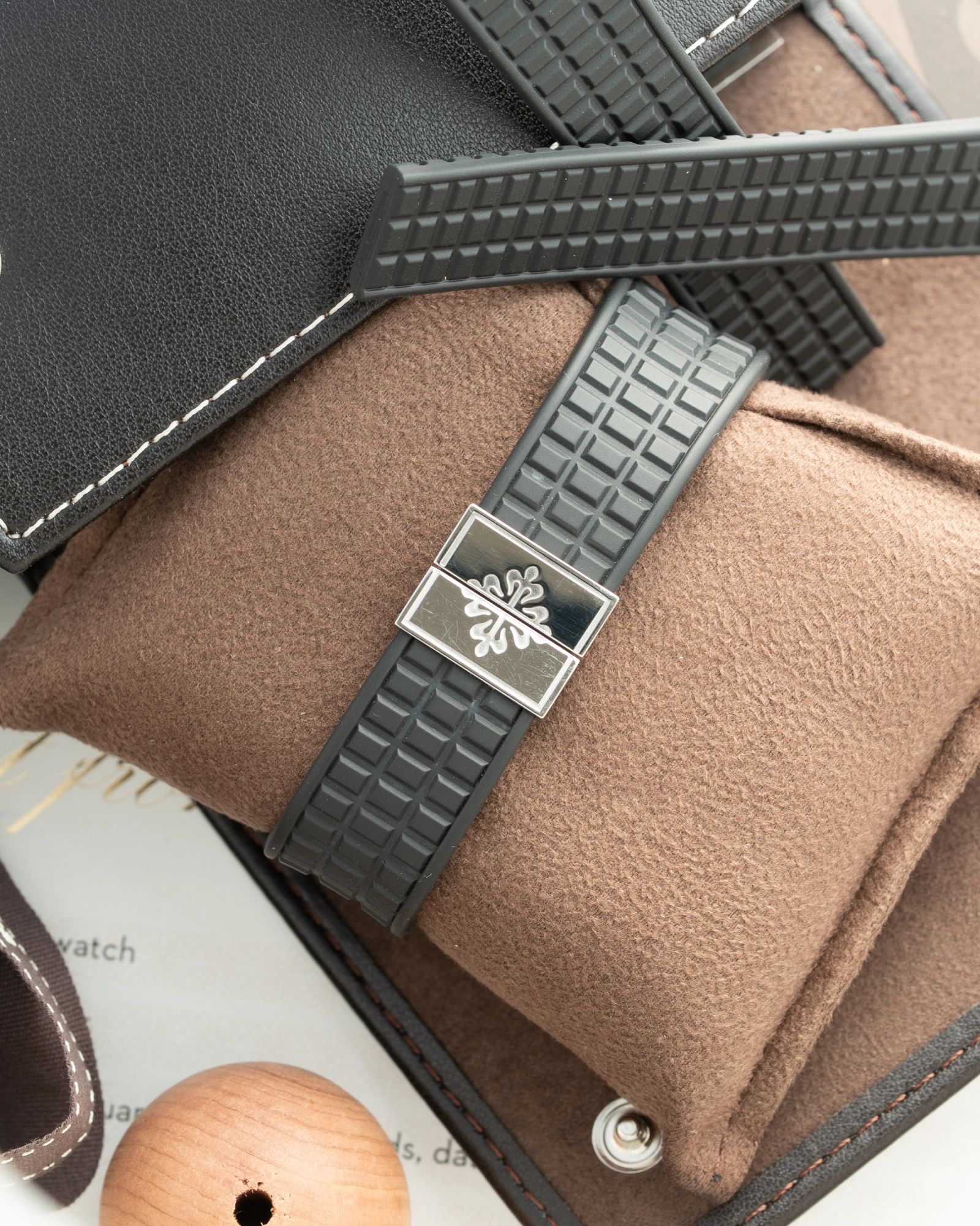 This stainless steel Patek Philippe Aquanaut ref. 5064A has everything that Patek is known for: it breathes class and style and is ofcourse perfectly finished. The watch just came back from a full service at Patek Philippe in 2025. The case is in great condition, showing some minor signs of wear. The example we have on offer comes with the Patek Philippe papers (Extract of Archives) Patek Philippe box (Service Pouch). The watch was produced in 2007 and sold in 2008, making it one of the very last examples produced. It runs on the Patek Philippe E23 S C quartz caliber. The date window is situated at the 3 o’ clock position. The black grayish dial is stunning and on top of it in perfect condition. The black tropical strap is brand new and uncut.