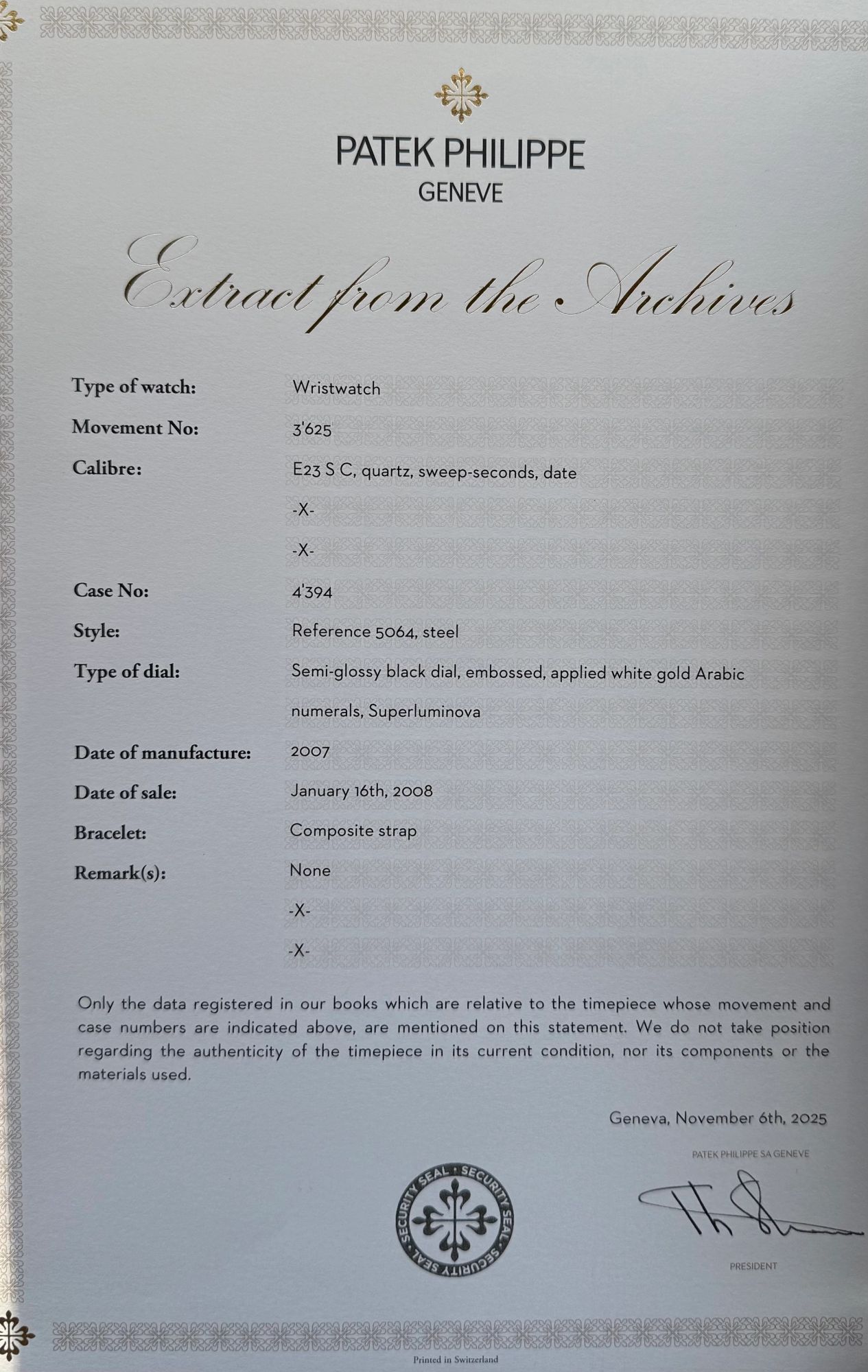 Patek Philippe Aquanaut "Patek Service" 5064 Black 2007 with original box and papers