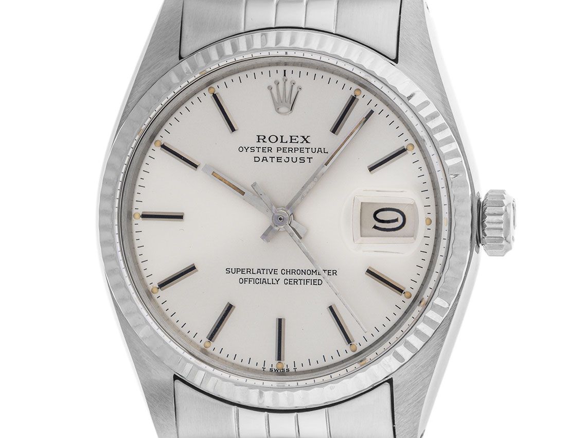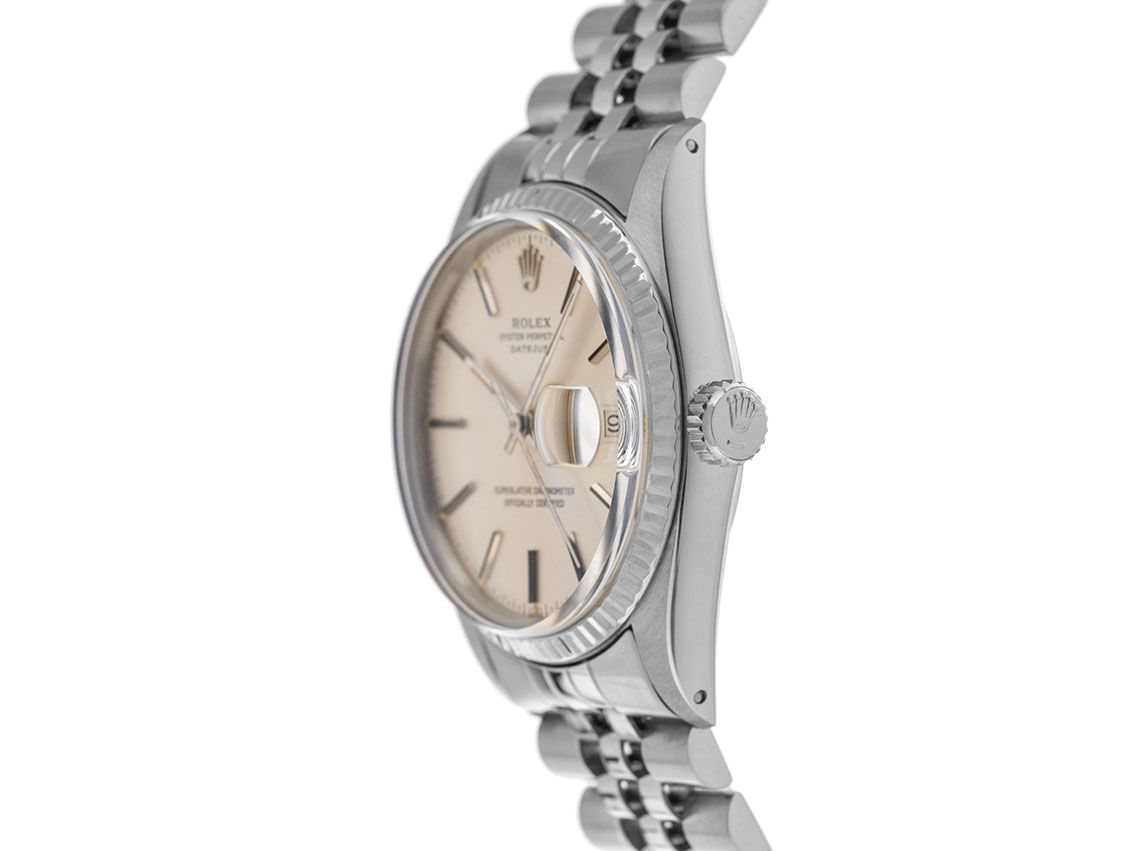 Gehäuse Edelstahl poliert und satiniert, Gehäusedurchmesser ohne Krone 36mm, Gehäusehöhe 12,6mm. Lünette 18kt Weißgold geriffelt und poliert. Armband Jubilé Edelstahl poliert und satiniert, Rolex Faltschließe Edelstahl mit Hersteller-Logo. Zifferblatt silberfarben mit aufgesetzten weißgoldenen Indexen sowie weißgoldenen Zeigern, "T SWISS T" Aufschrift bei 6 Uhr. Uhrwerk Automatik, Rolex Manufakturkaliber 3035 mit 27 Edelsteinen. Anzeige von Stunde, Minute und Sekunde über Zeiger aus der Mitte mit Sekundenstopp zur sekundengenauen Einstellung der Uhrzeit, Datumsanzeige mit Schnellverstellung unter Glaslupe bei 3 Uhr mit open 6/9 (offene 6 und 9 in der Datumsanzeige). Plexiglas gewölbt. Krone verschraubbar mit Hersteller-Logo. Boden Edelstahl verschraubt. Gewicht der Uhr inklusive Armband 85g, Länge des Armbandes inklusive Gehäuse 180mm. Referenznummer: 16014, Gehäusenummer: 5881XXX, Baujahr: 1978, ID: KA1409101680325H-7400, Artikelnummer: 10000079014. Mit Gangkontrolle und kompletter äußerlicher Aufarbeitung von März 2025, inkl. 1000 Tage Garantie. Original Rolex Box und Beschreibung, Ledermäppchen, Übersetzungsheft, Rolex Chronometer-Siegel und Watchregister Auszug von März 2025, The Watch Register Zertifikat / ohne Eintrag (Internationale Datenbank für verlorene oder gestohlene Uhren). Superschnäpchen, Kapitalanlage mit Wertsteigerungspotential, extrem seltenes Sammlerstück. Guter Zustand. Lieferzeit sofort.