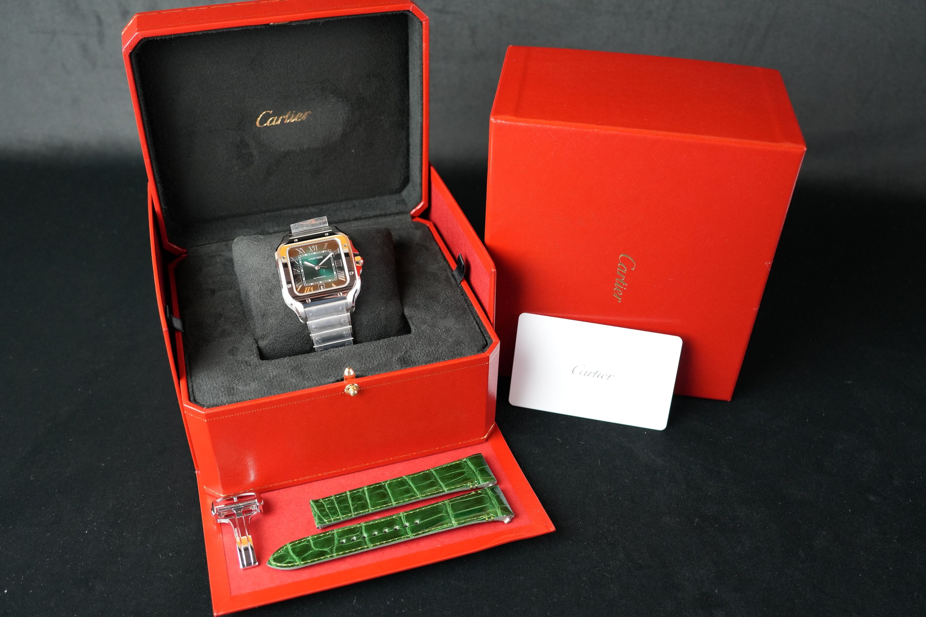 Cartier Santos Santos Large Date Steel Green Roman Dial WSSA0062 NEW