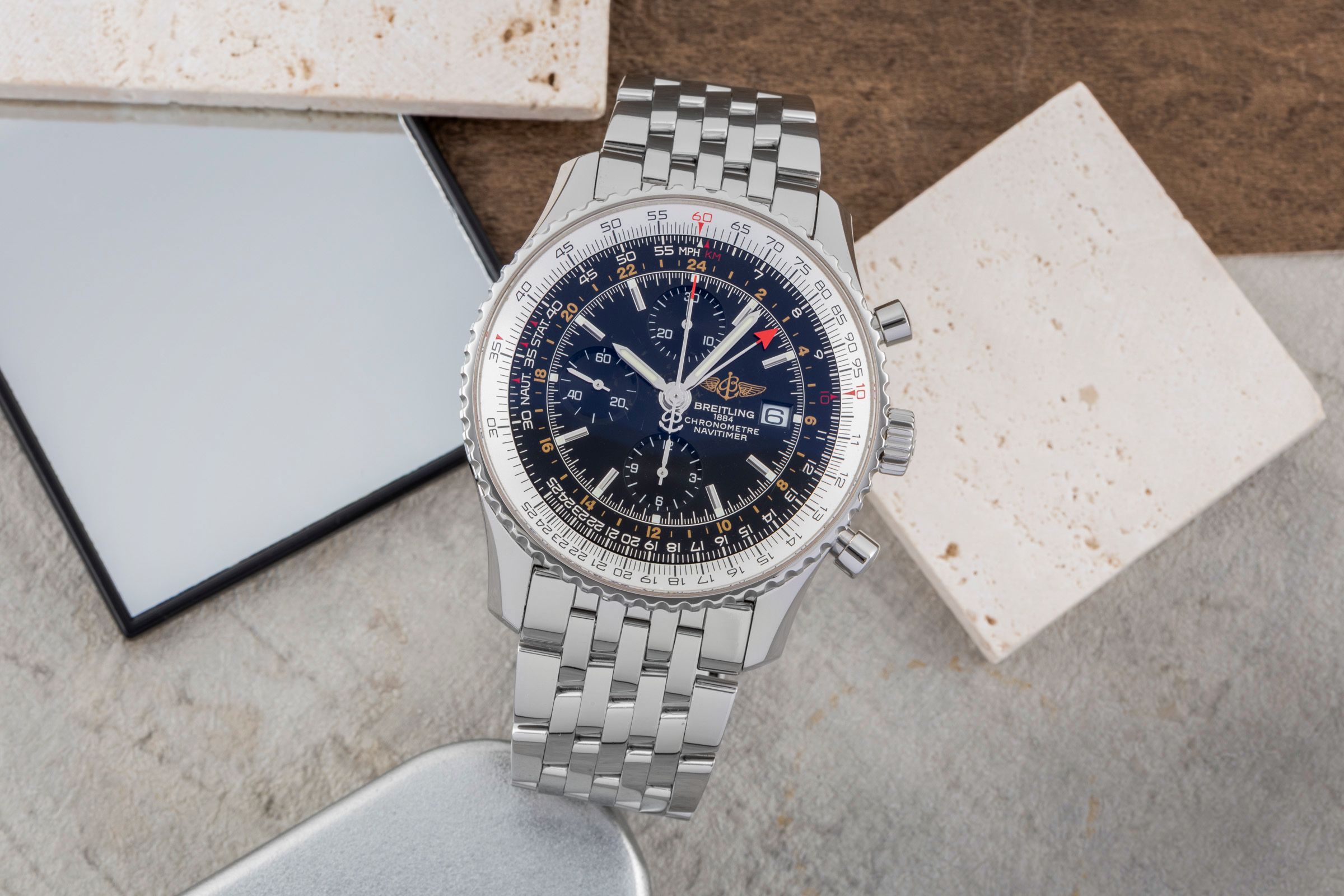 Alternative title: Breitling A24322 Navitimer World GMT; Breitling Navitimer World GMT Chronograph Automatik Ref. A24322 Klassiker B&P [2505378]