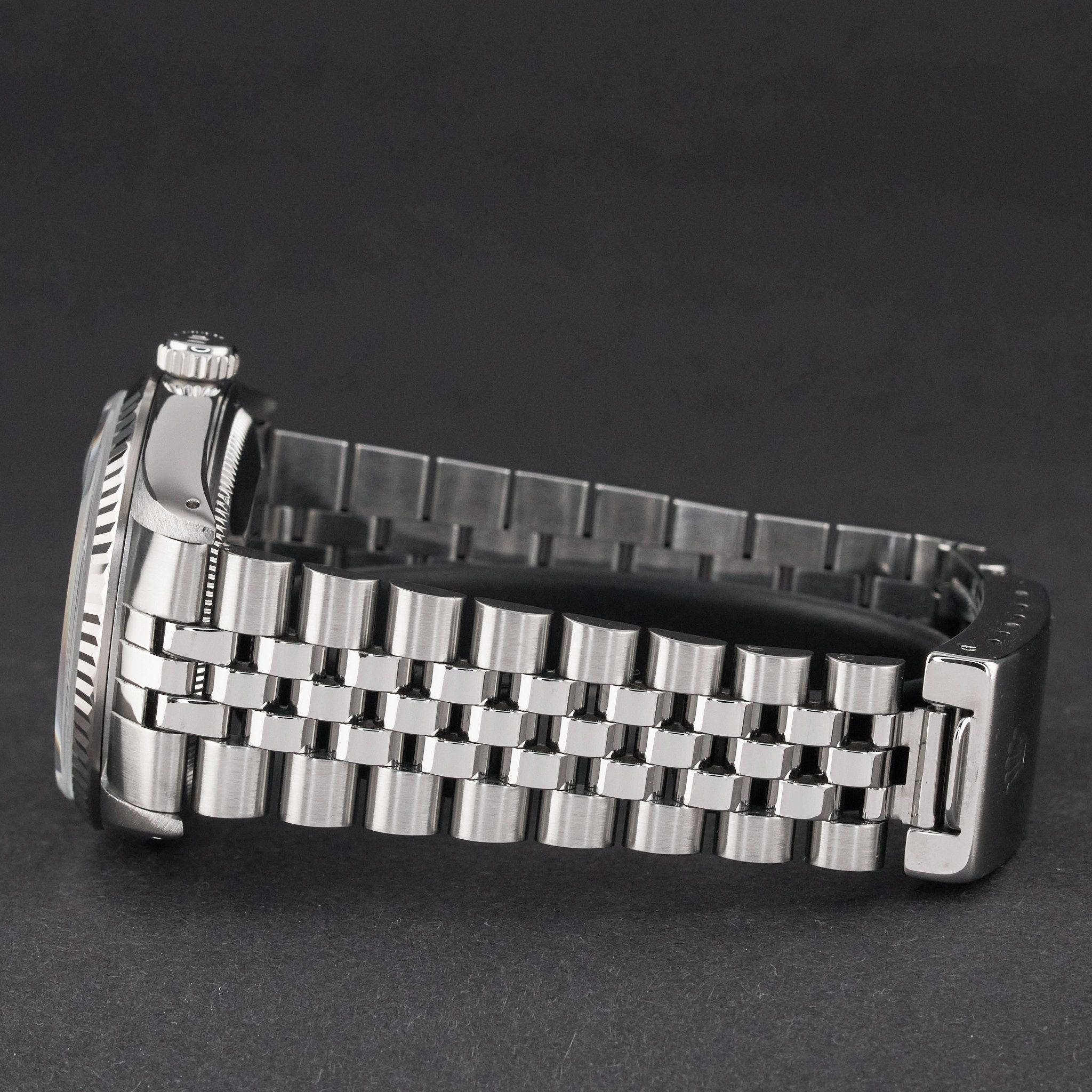 This Rolex Datejust 16234 features a Silver small diamond dial and is crafted from stainless steel, with a production year of 1993.
