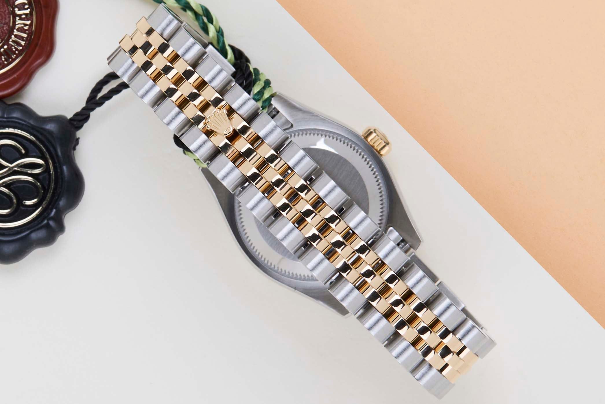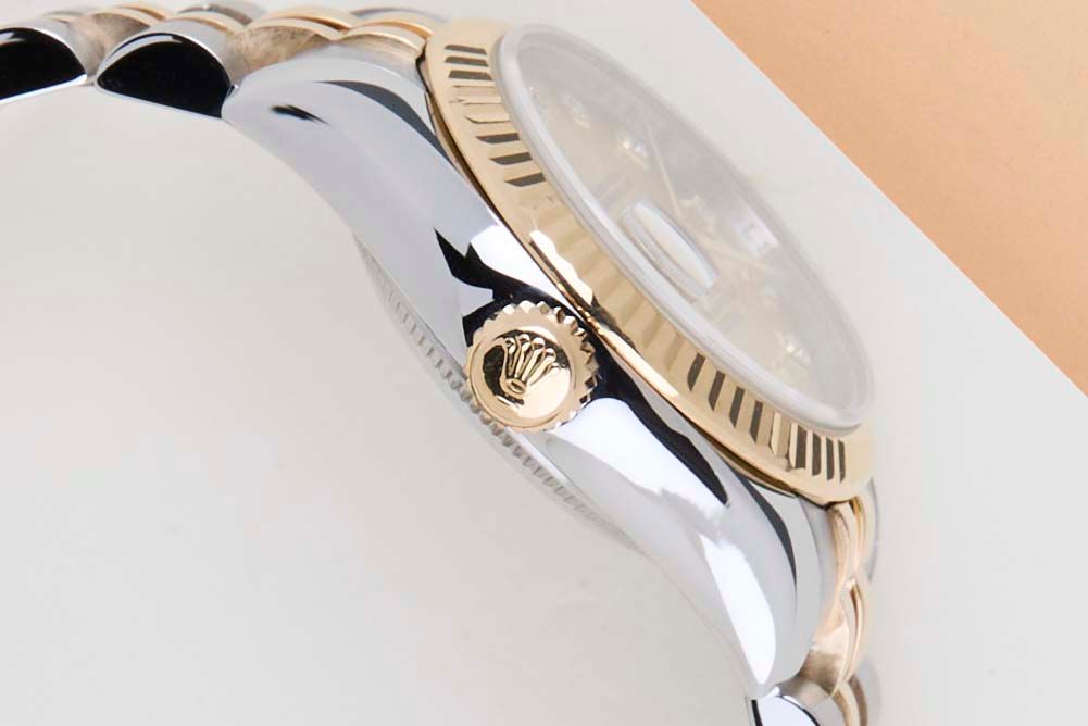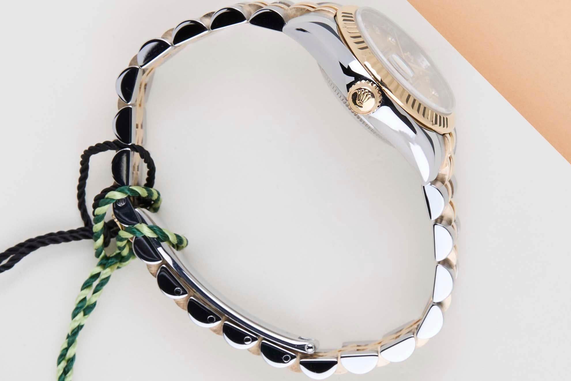 Rolex introduced the original Datejust in 1945 to celebrate the company's 40th anniversary. Due to the enormous success, Rolex released the first Lady-Datejust in 1957.This Rolex Datejust 26 'Champagne Diamond Dial - Jubilee' dates back to February 2014.This Datejust is made of a combination of 18k Yellow Gold and stainless steel and is fitted with a Jubilee bracelet which conceals the Crownclasp.This Rolex Datejust 26 is in Mint condition and comes with the original Rolex Warranty Papers and Box. Furthermore, the watch has been serviced by our watchmakers and therefore has one year Steiner of Warranty.